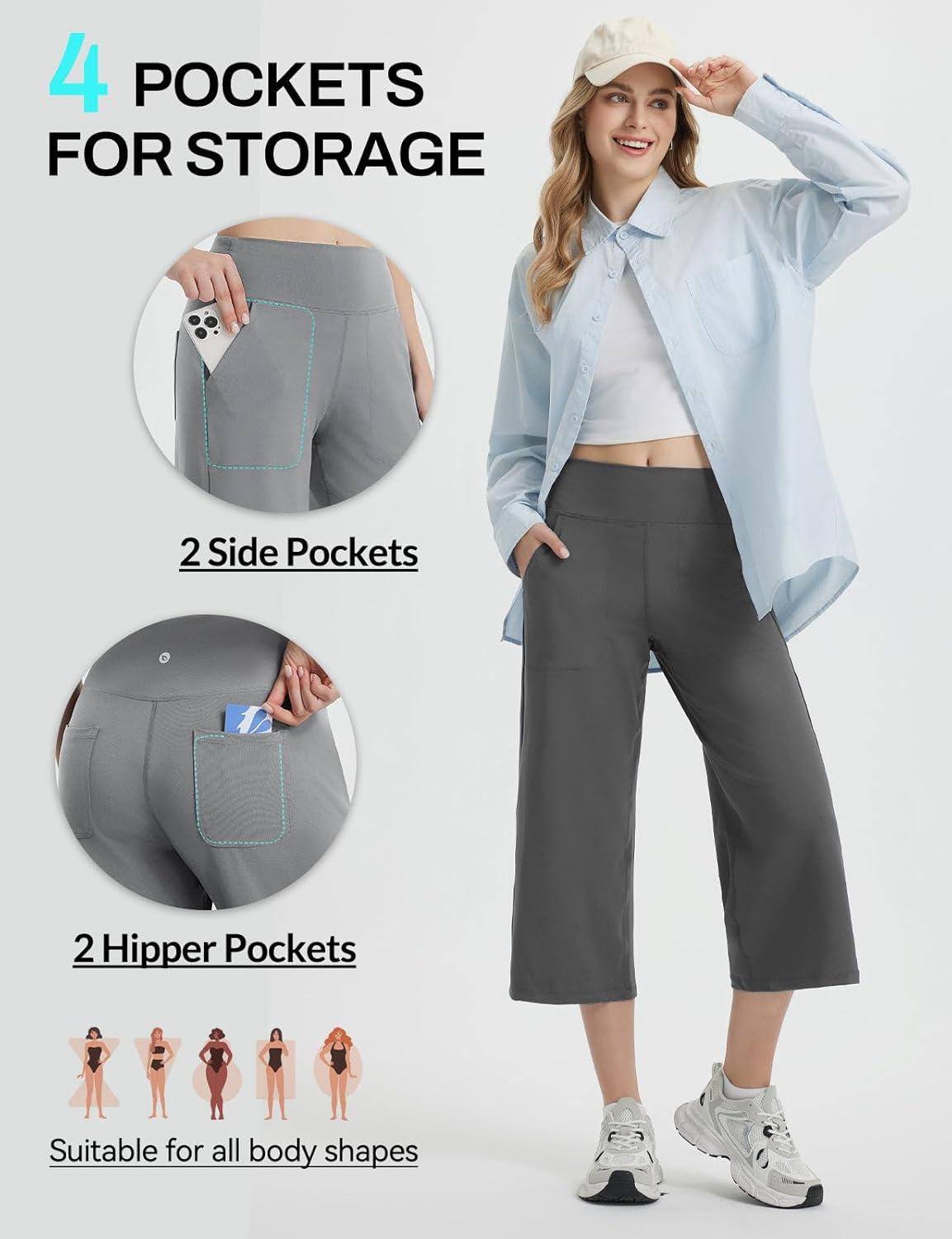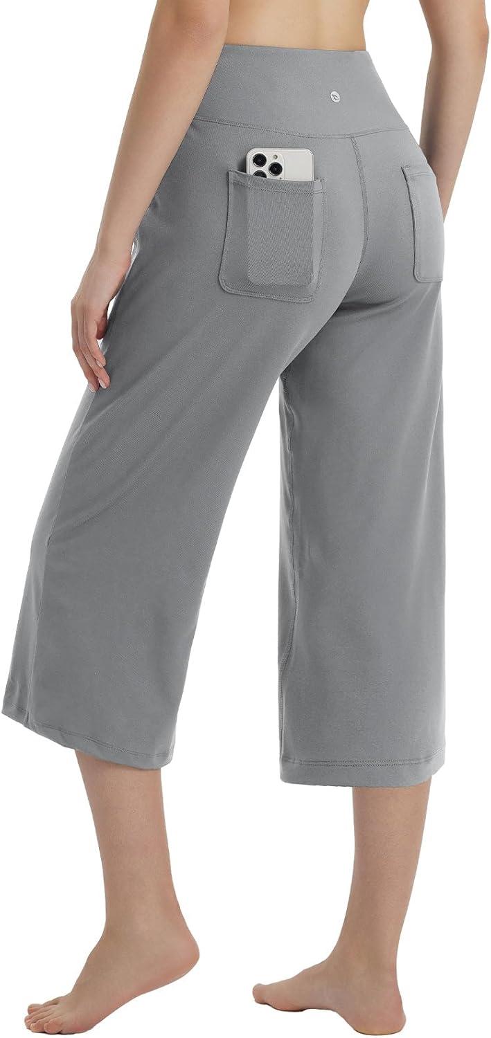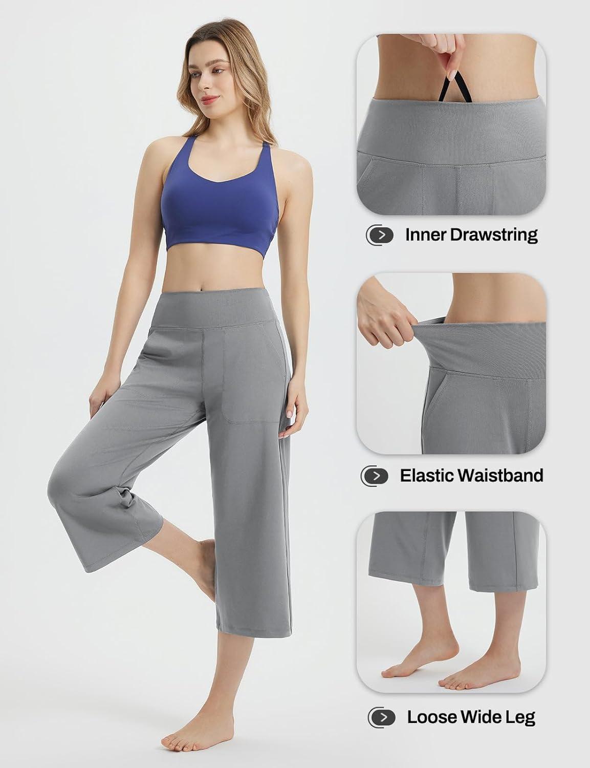 baleaf Women’s Capri Pants Wide Leg Yoga Dress Capris High Waist Cropped Pants with Pockets Loose Lounge Travel Summer(Dark Grey)