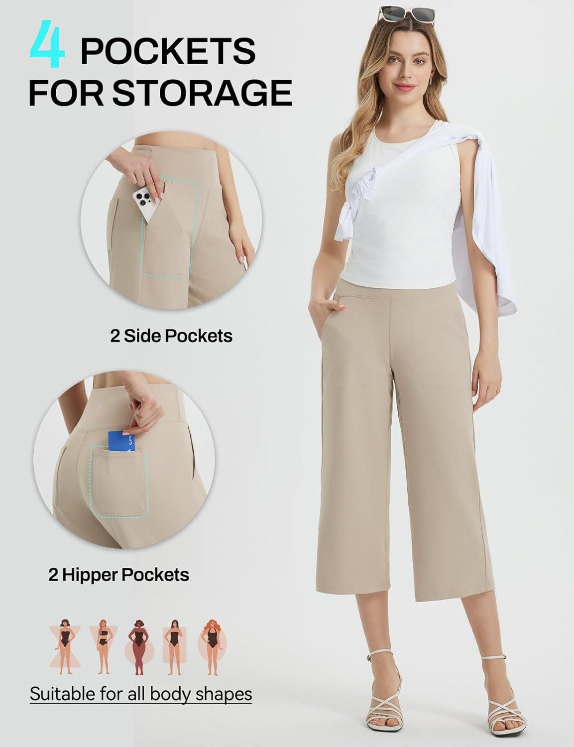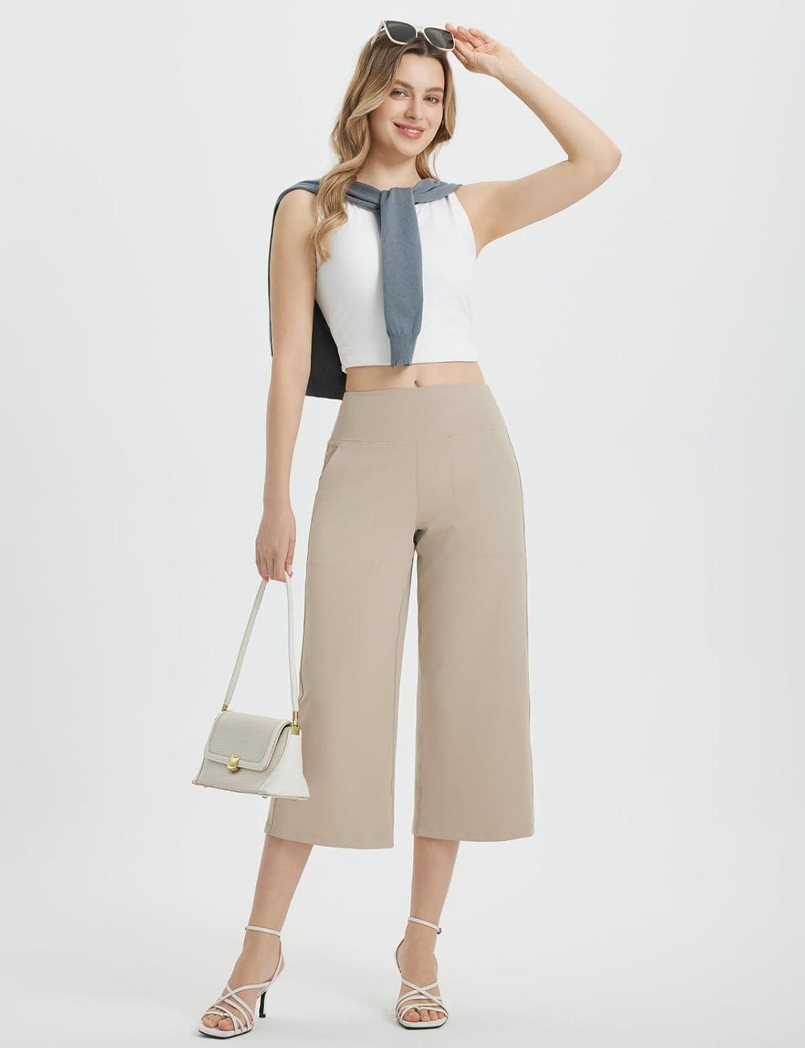 imagebaleaf Womens Capri Pants Wide Leg Yoga Dress Capris High Waist Cropped Pants with Pockets Loose Lounge Travel SummerKhaki