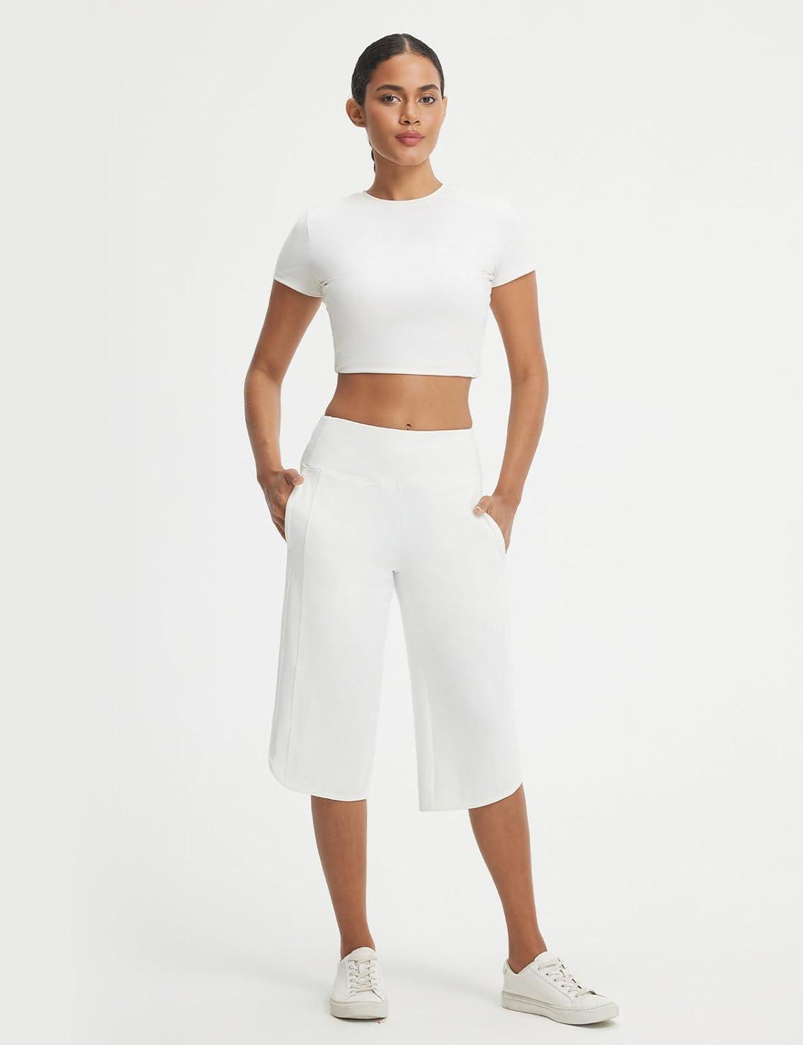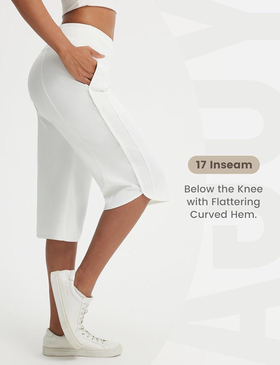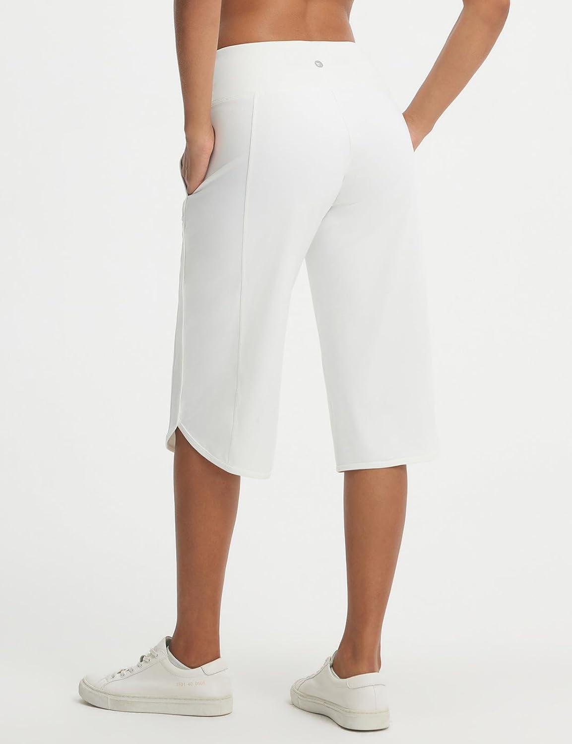 baleaf Women's Capri Pants with Pockets Straight Leg Yoga Capri Leggings 17" Mid-Calf Capris Workout(Star White)