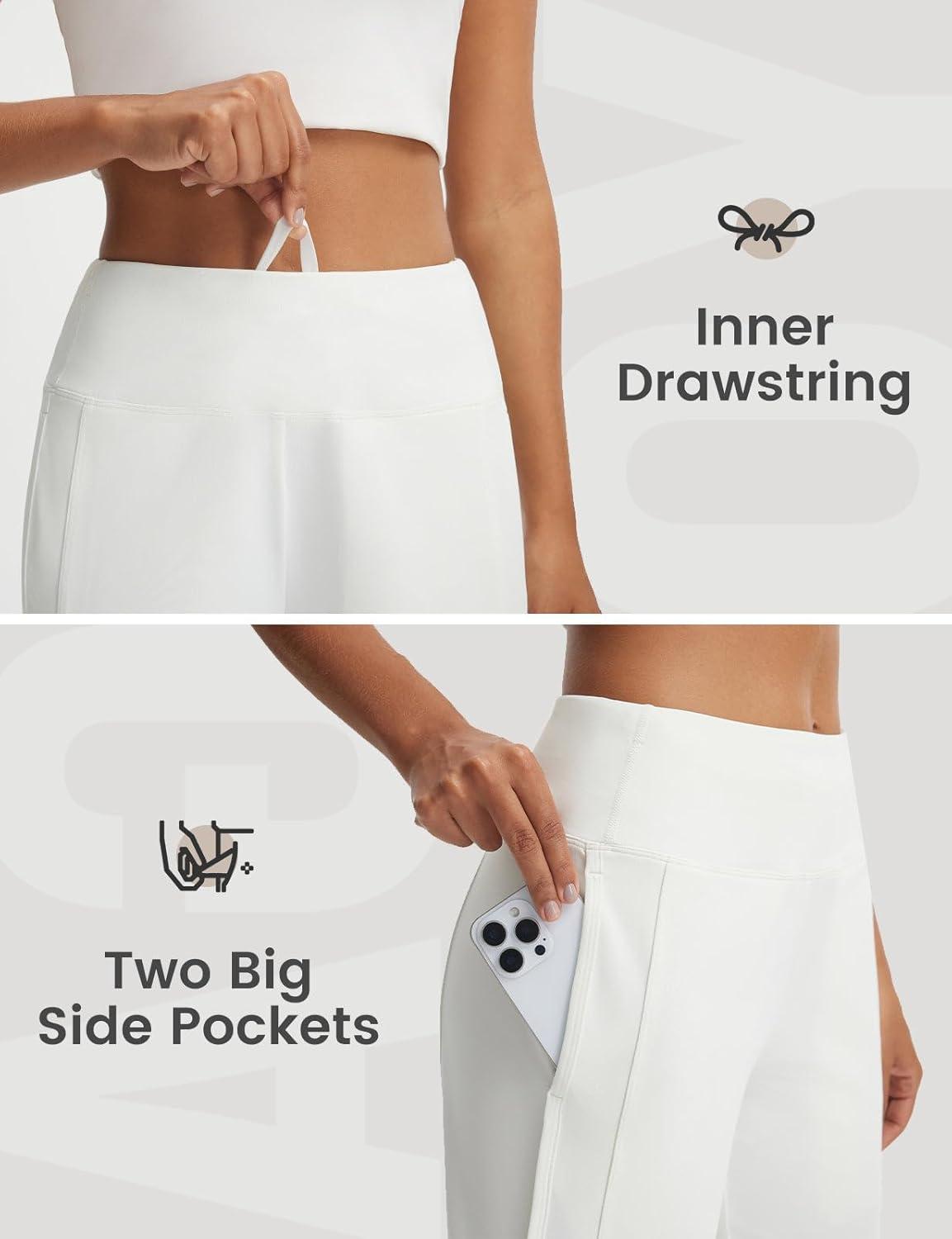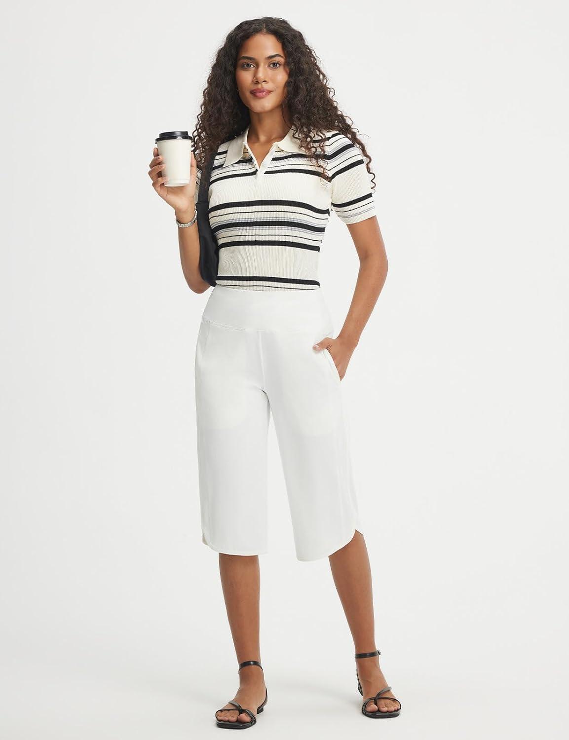imagebaleaf Womens Capri Pants with Pockets Straight Leg Yoga Capri Leggings 17 MidCalf Capris WorkoutStar White