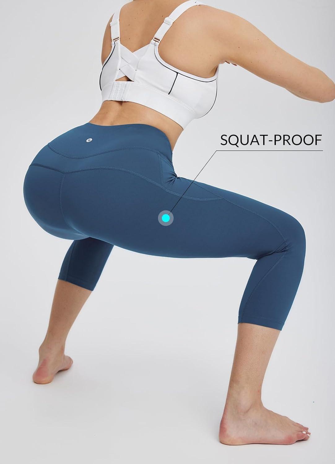 BALEAF Women's Knee Length Leggings High Waisted Yoga Workout Exercise Capris for Casual Summer with Pockets