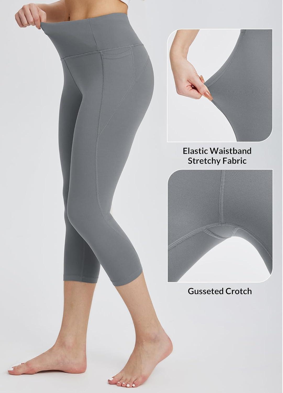 BALEAF Women's Knee Length Leggings High Waisted Yoga Workout Exercise Capris for Casual Summer with Pockets