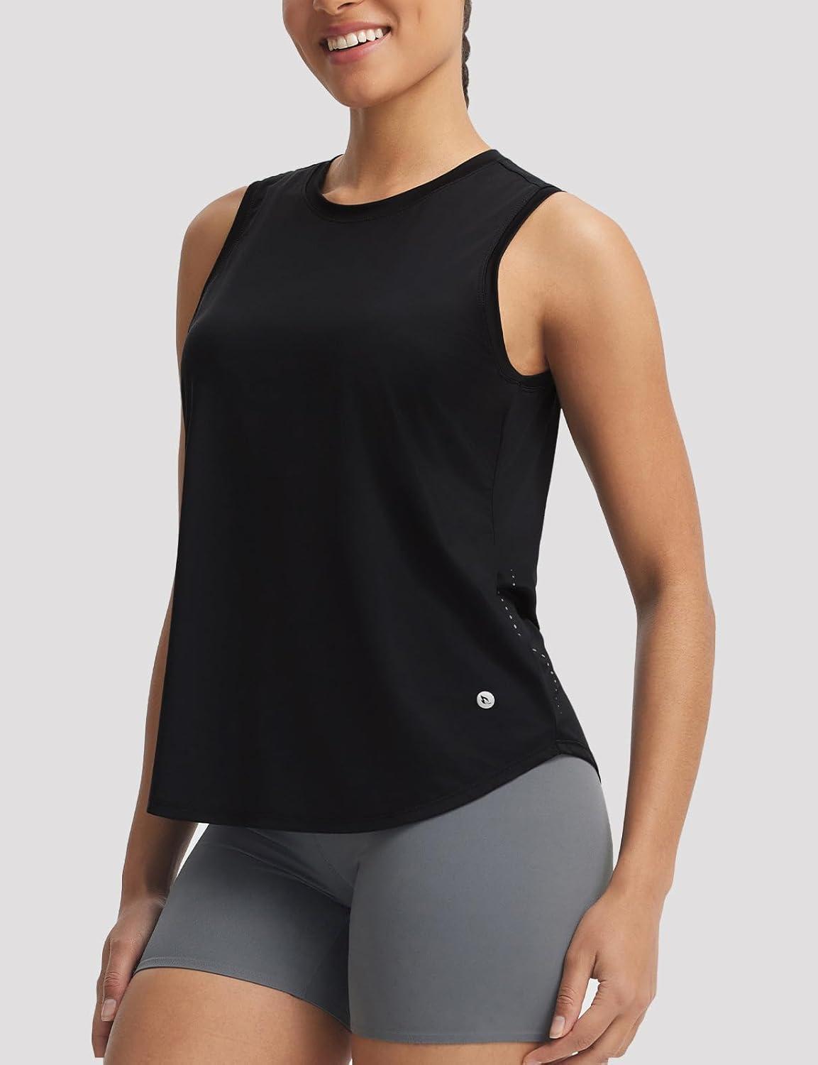 imagebaleaf Womens Cooling Workout Tank Tops Quick Dry Loose Fit Athletic Tops Sleeveless Shirts UPF50 Lightweight Running GymBlack