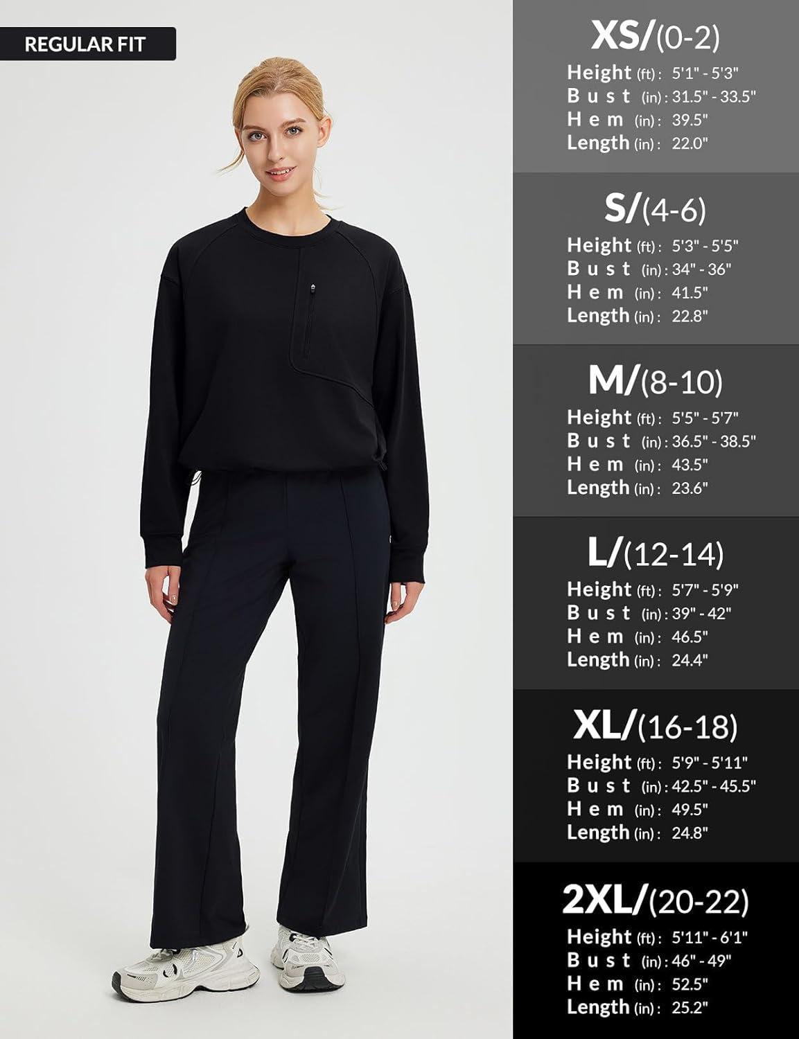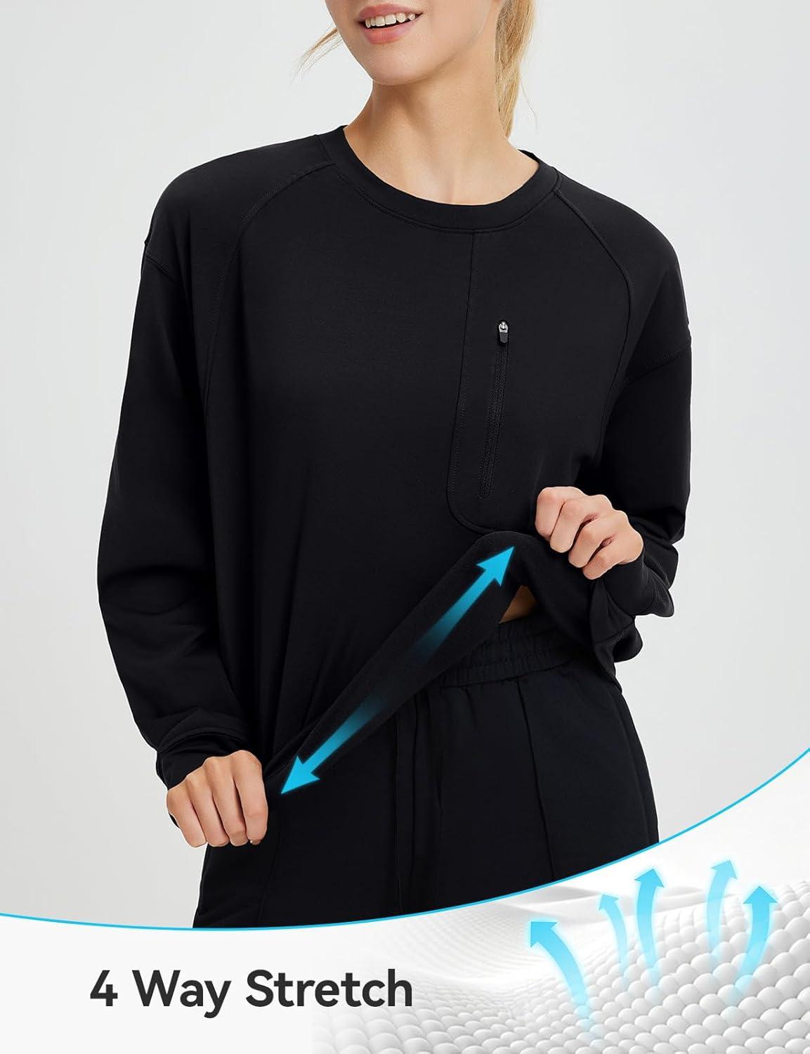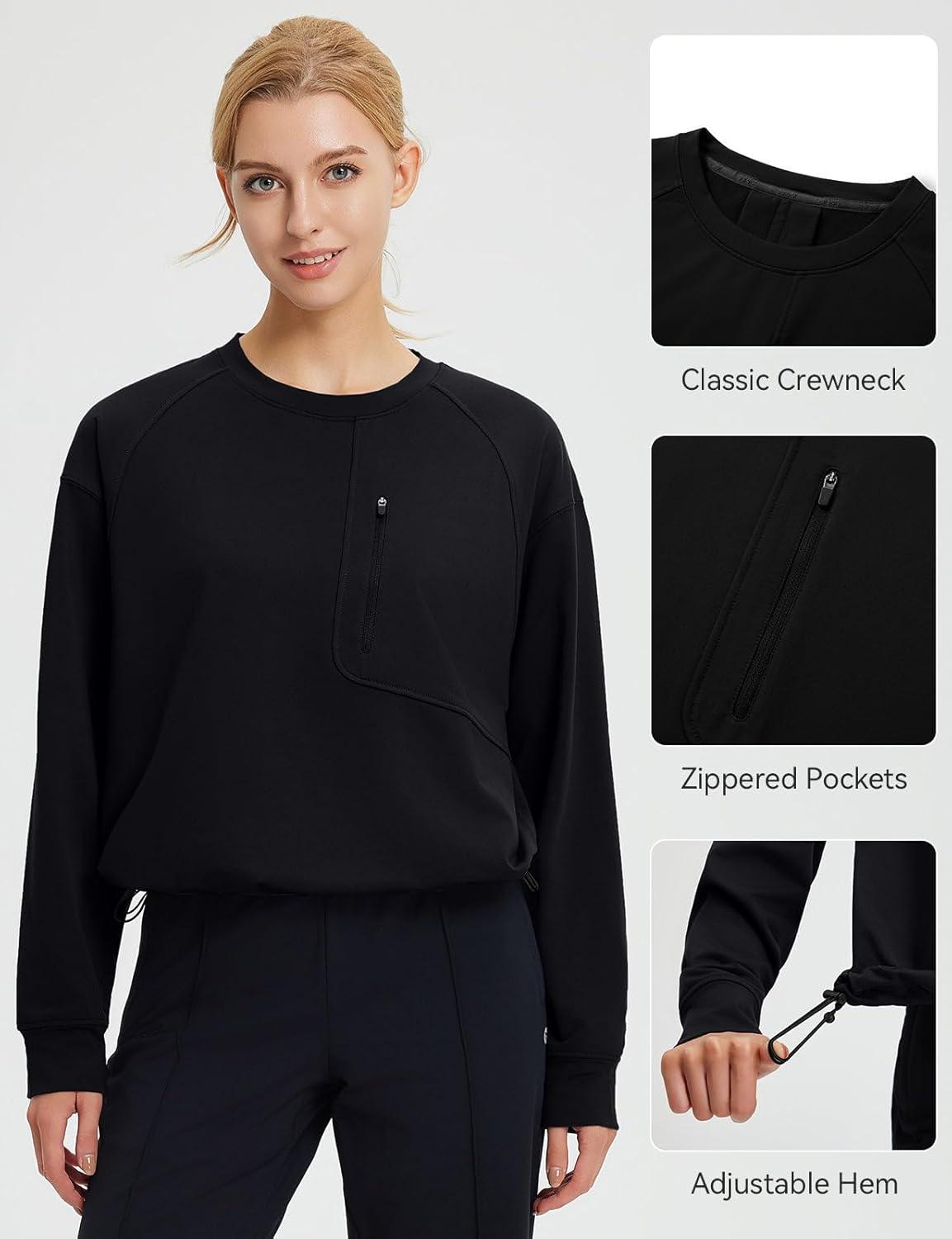 baleaf Women's Cropped Crewneck Sweatshirt Fleece Lined Pullover Loose Fit Long Sleeve Workout Athletic Tops with Pocket(Black)