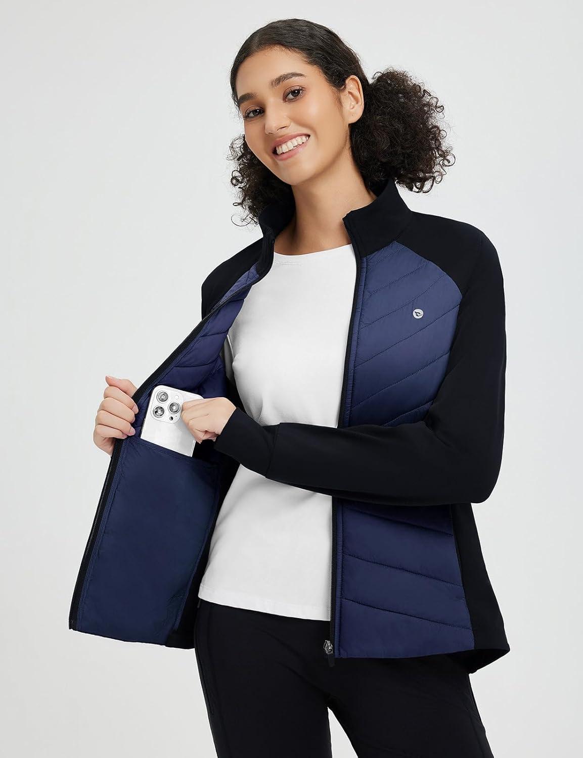 baleaf Women’s Cycling Puffer Jacket Winter Warm Lightweight Insulated Hiking Jackets Zip Pockets Running Skiing(Blue/Black)