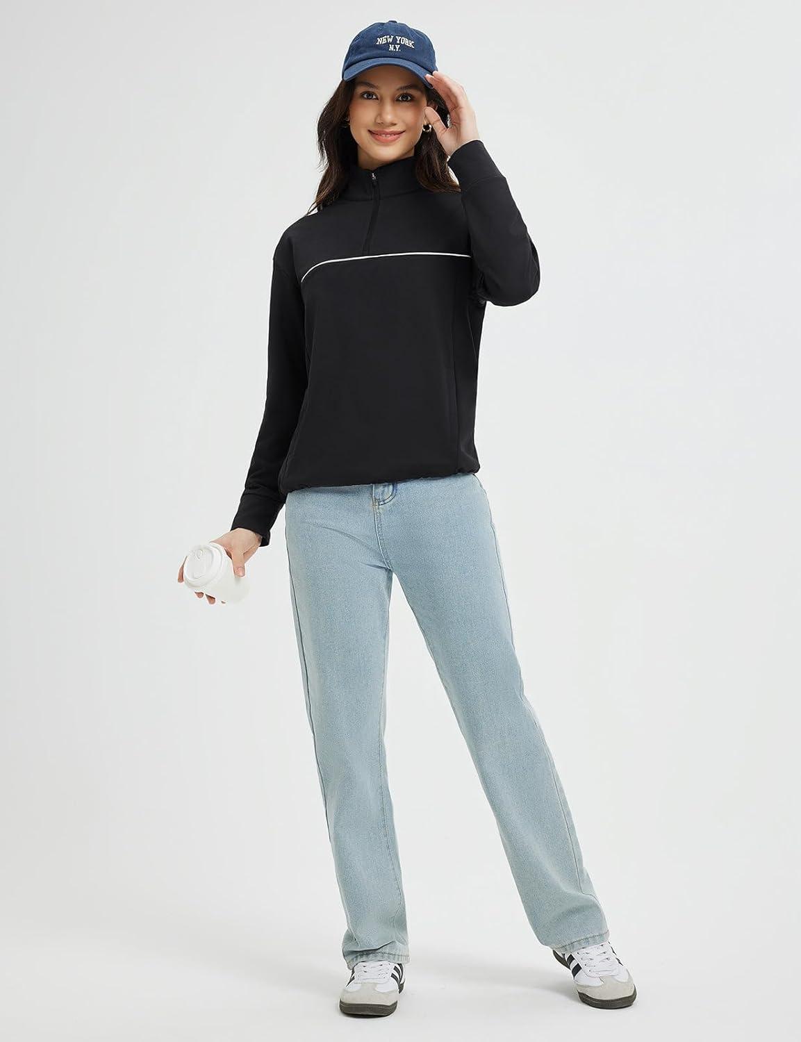 baleaf Women's Fleece Golf Pullover Half Zip Running Jacket Thermal Shirts Winter Cold Weather Gear Water Resistant(Black)