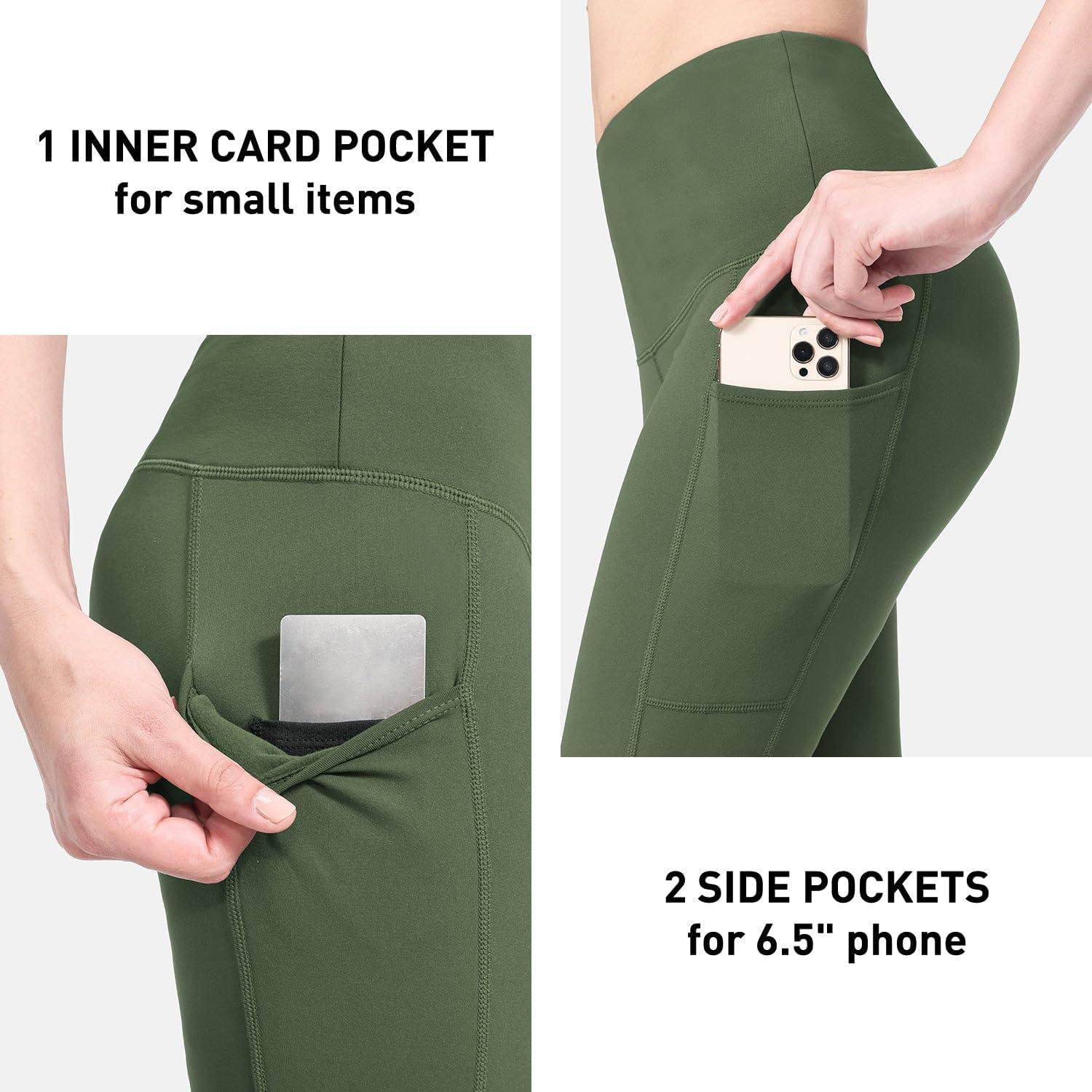 imagebaleaf Womens Fleece Lined Leggings Thermal Warm Winter Tights High Waisted Thick Yoga Pants Cold Weather with PocketsArmy Green