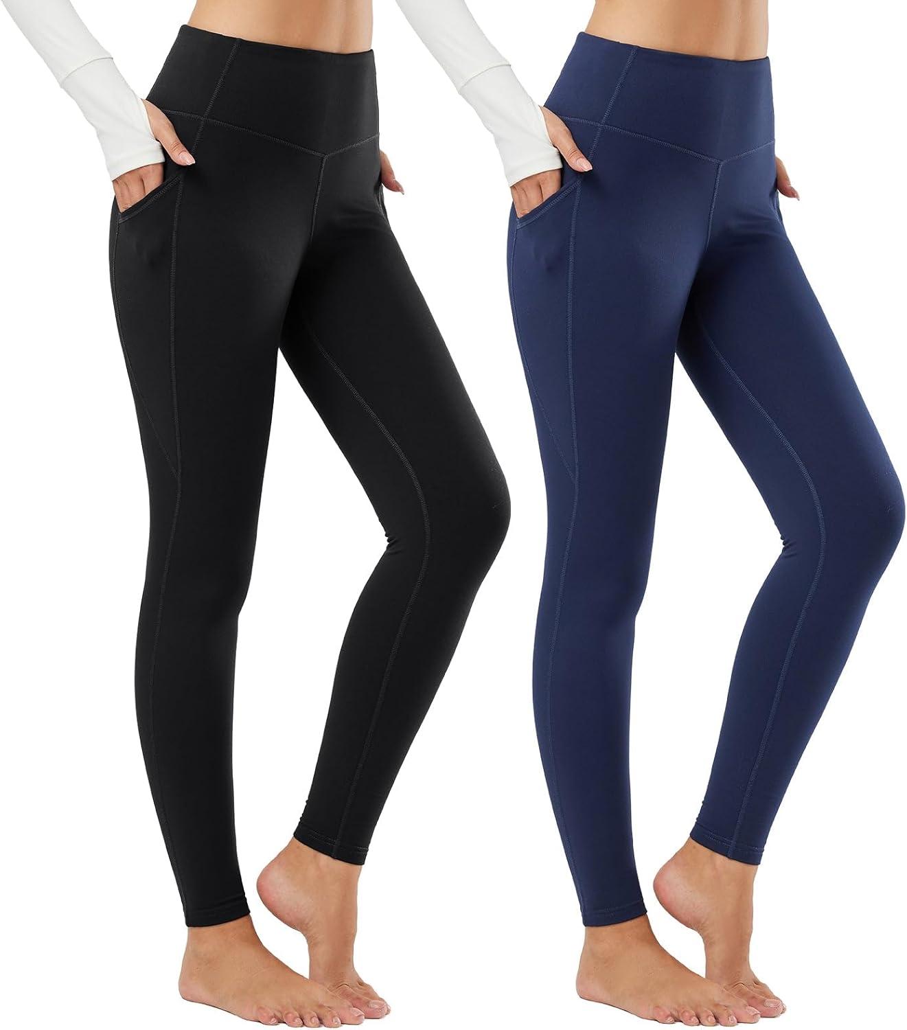 imagebaleaf Womens Fleece Lined Leggings Thermal Warm Winter Tights High Waisted Thick Yoga Pants Cold Weather with PocketsBlackblue