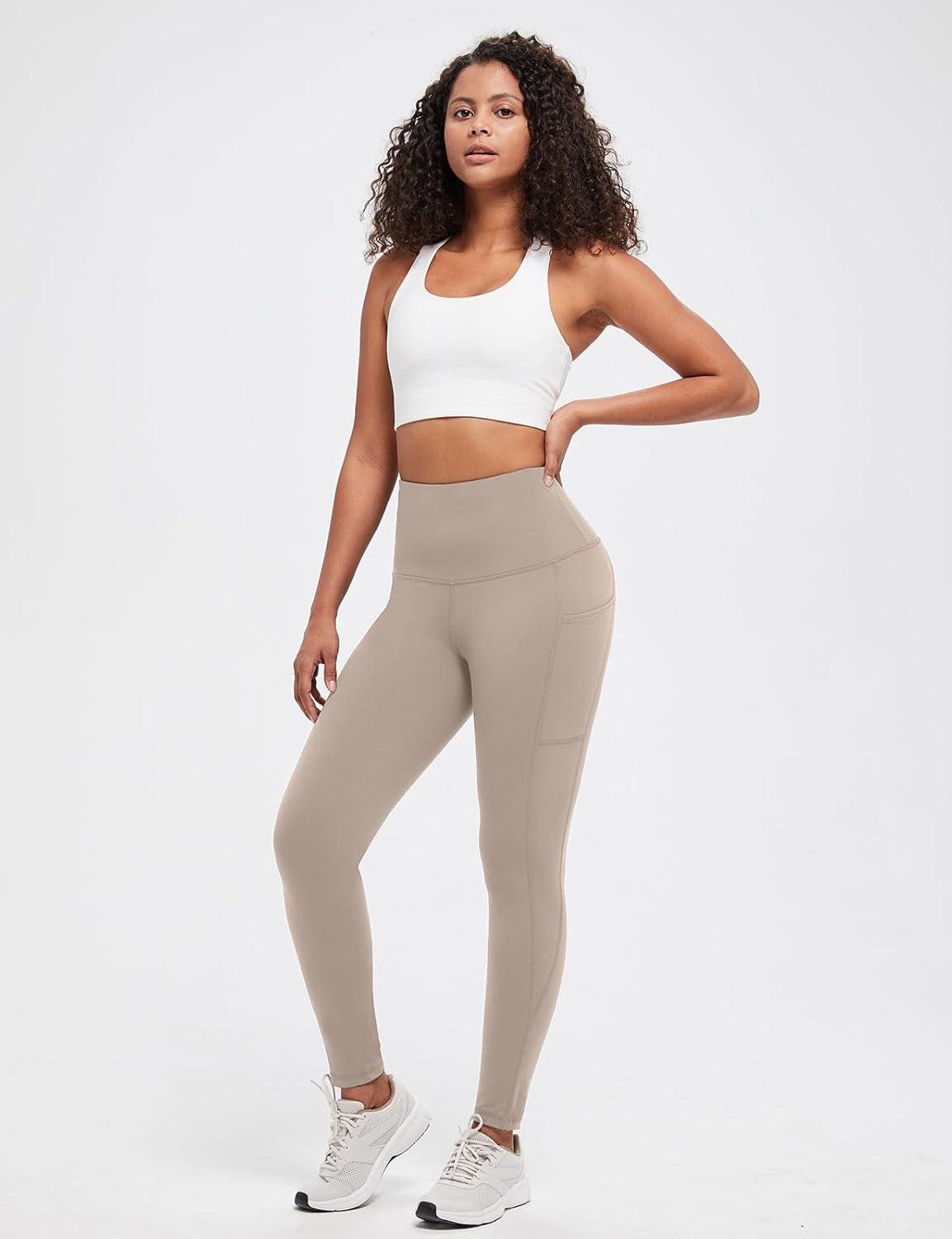 baleaf Women’s Fleece Lined Leggings Thermal Warm Winter Tights High Waisted Thick Yoga Pants Cold Weather with Pockets(Khaki)