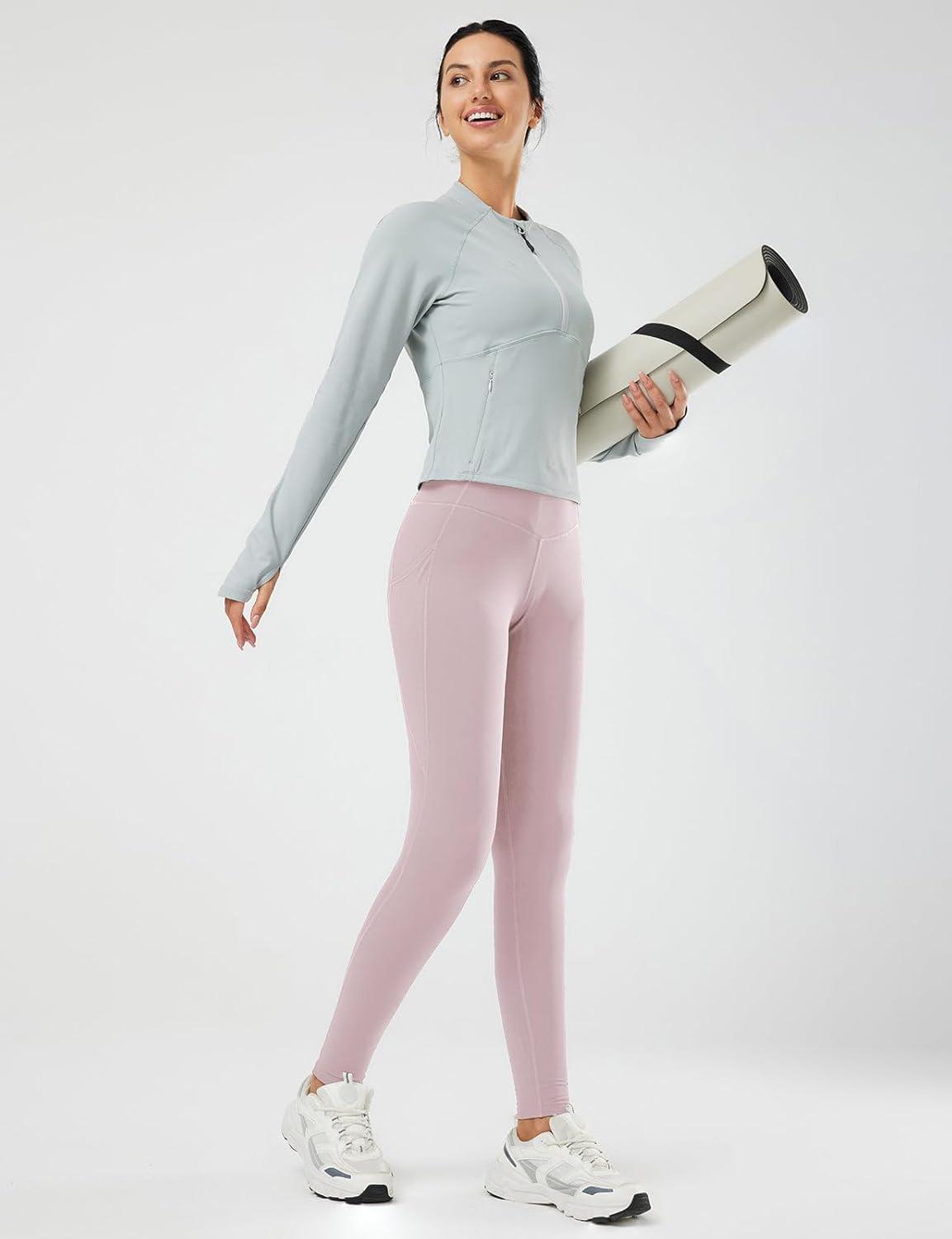 baleaf Women’s Fleece Lined Leggings Thermal Warm Winter Tights High Waisted Thick Yoga Pants Cold Weather with Pockets(Light Heather Gray)