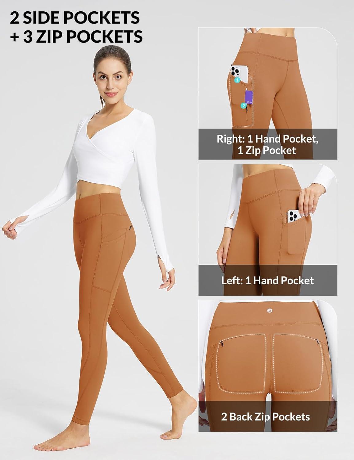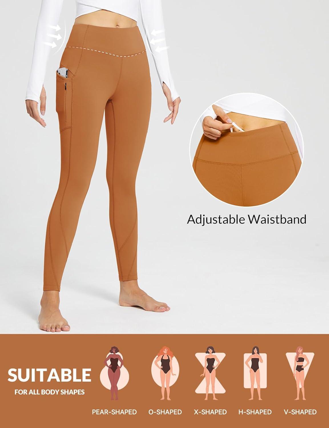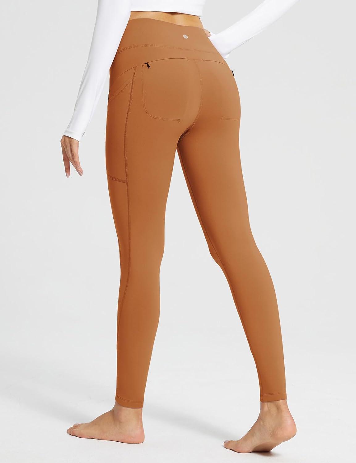 baleaf Women’s Fleece Lined Leggings Thermal Warm Winter Tights High Waisted Yoga Pants Cold Weather with Pockets(Caramel)
