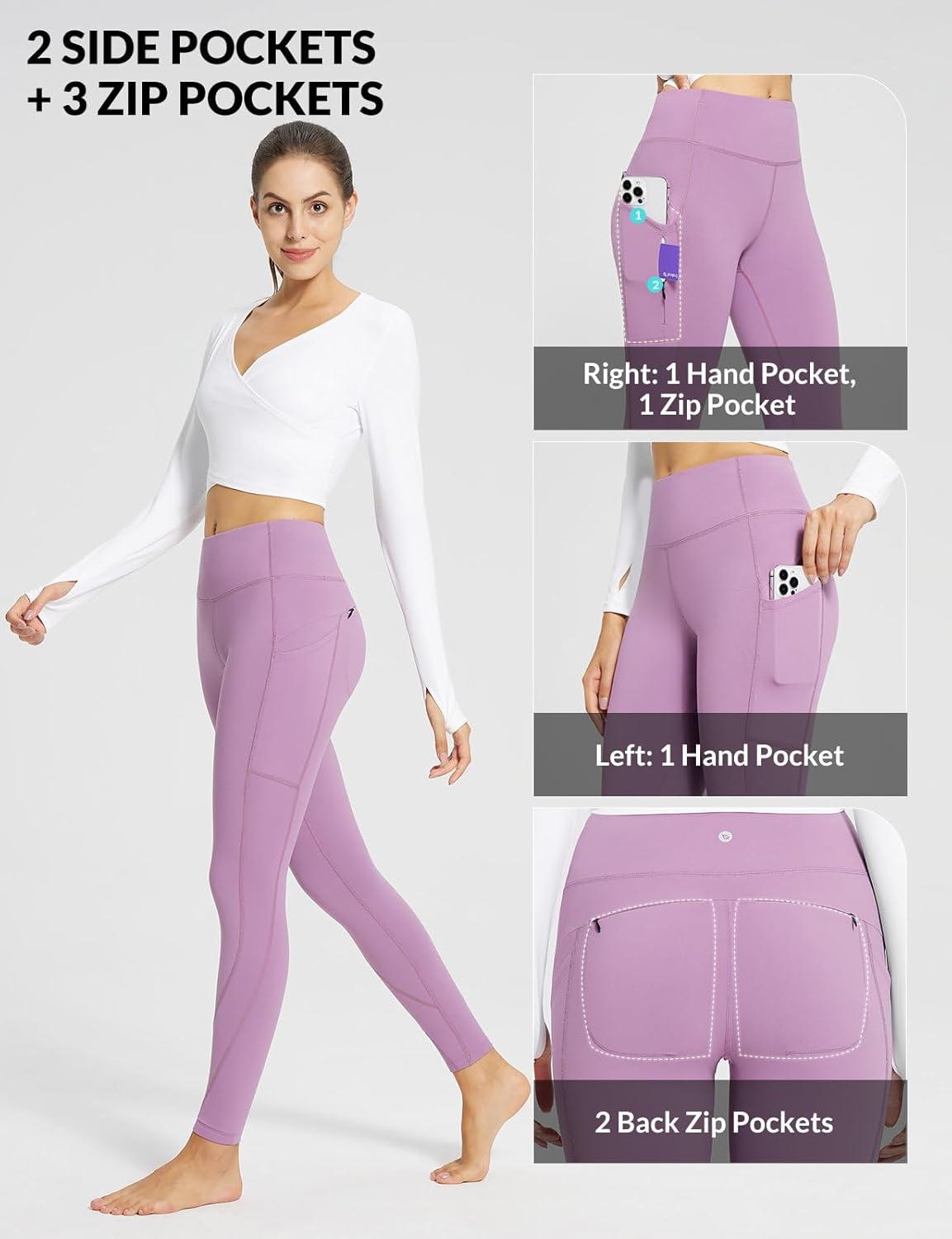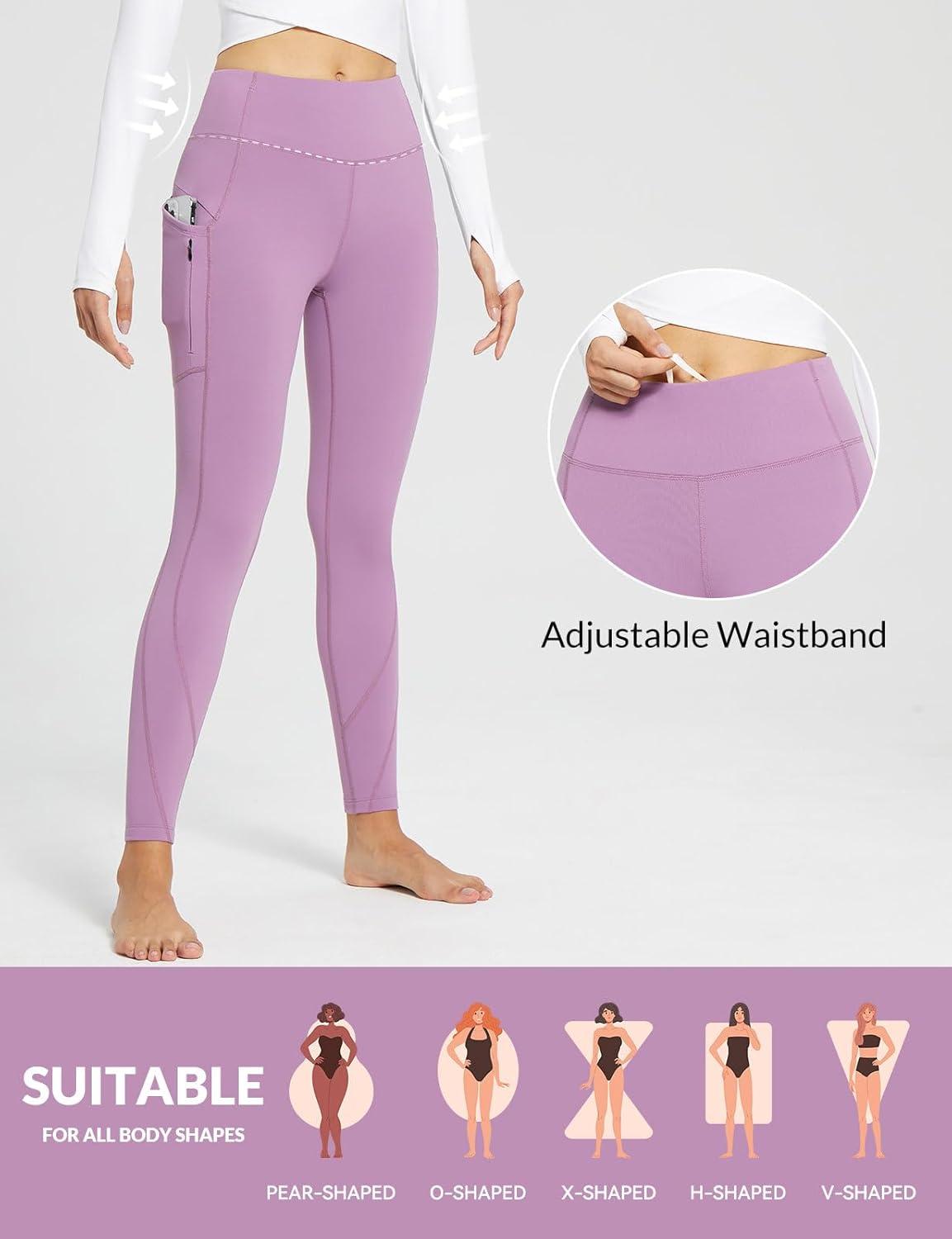 imagebaleaf Womens Fleece Lined Leggings Thermal Warm Winter Tights High Waisted Yoga Pants Cold Weather with PocketsGrape