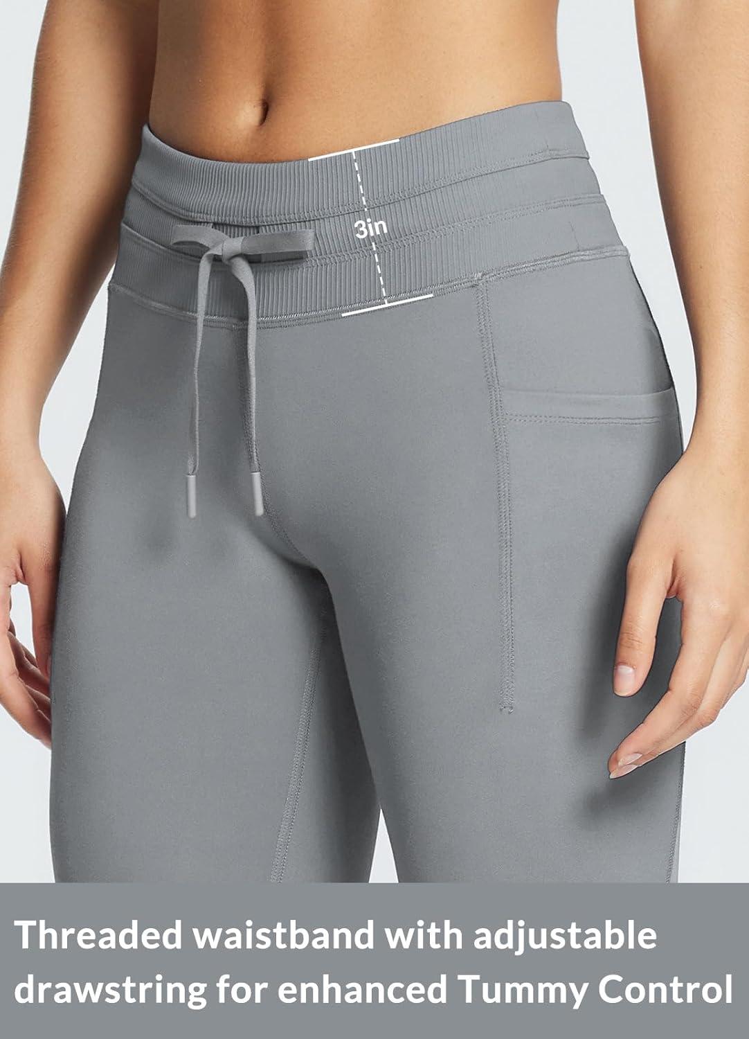 baleaf Women’s Fleece Lined Leggings Water Resistant High Waisted Thermal Warm Winter Tights Ski Hiking Pants with Pockets(Grey)