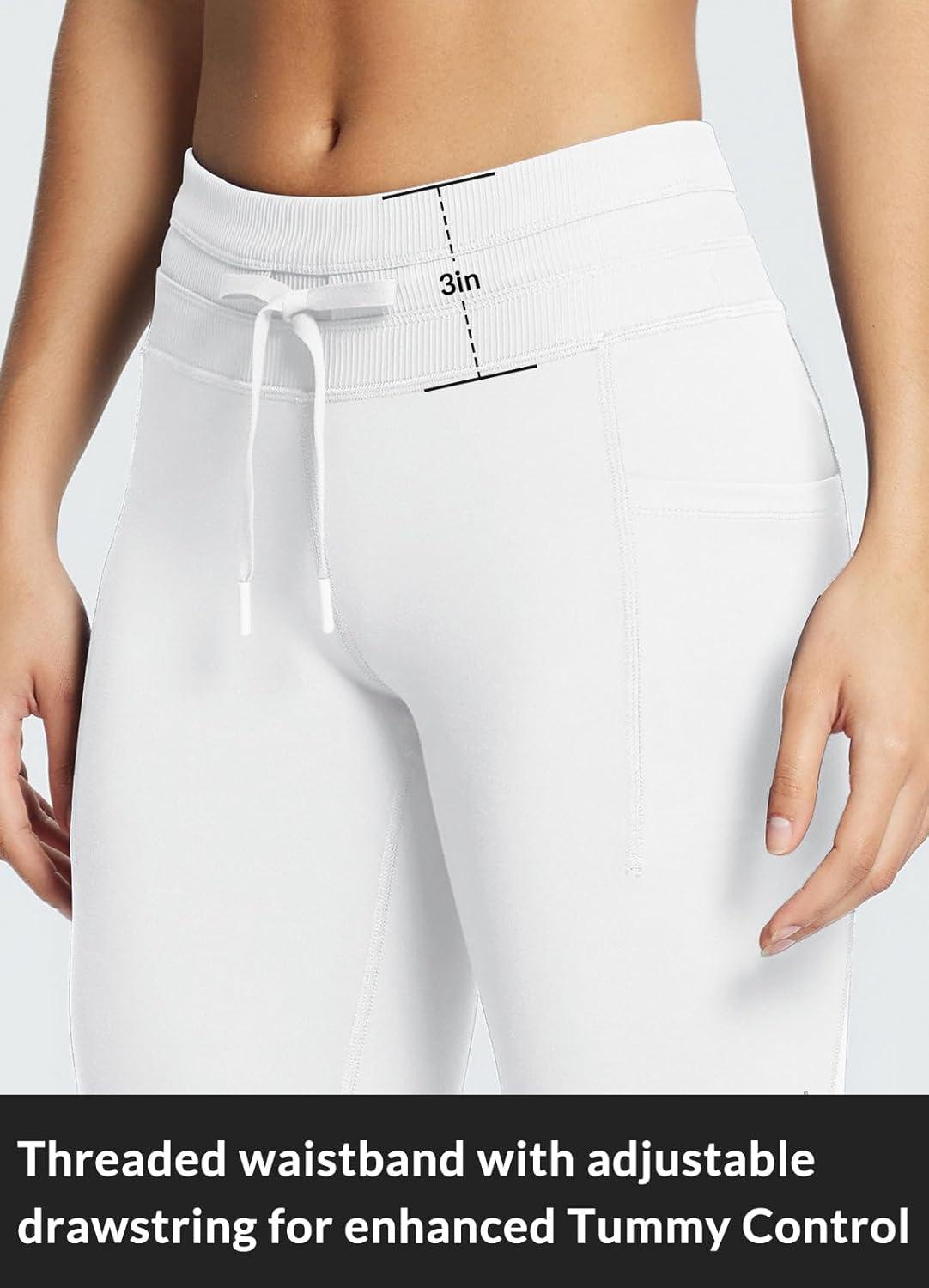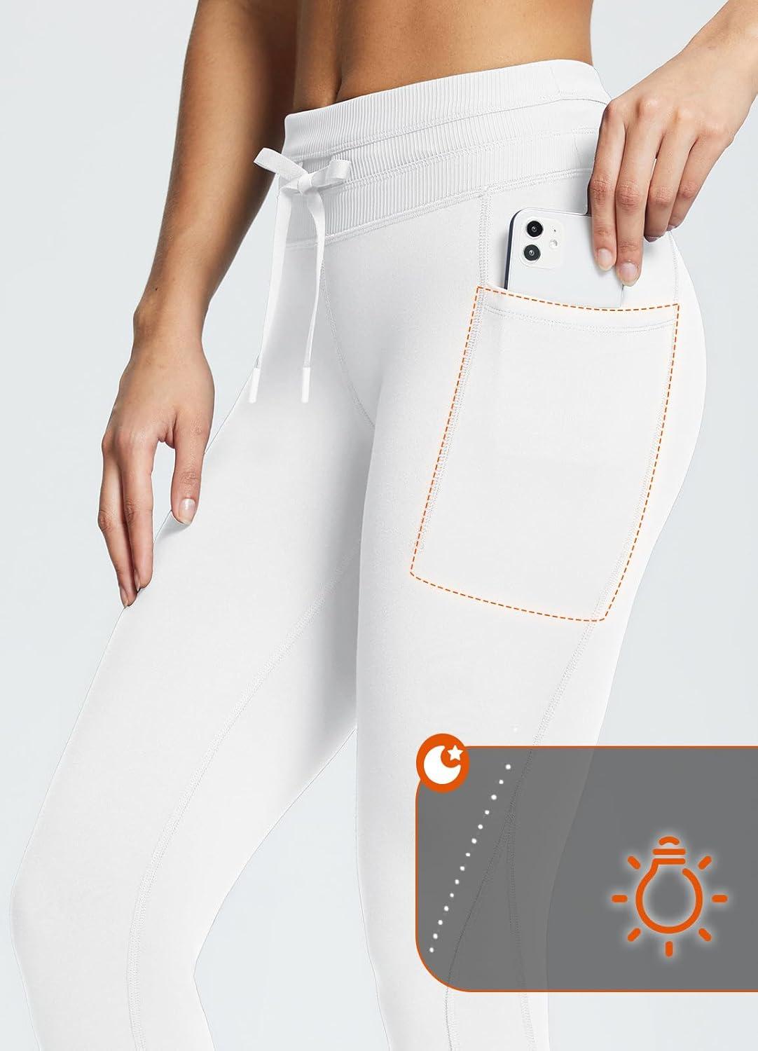 baleaf Women's Fleece Lined Leggings Water Resistant High Waisted Thermal Warm Winter Tights Ski Hiking Pants with Pockets(White)
