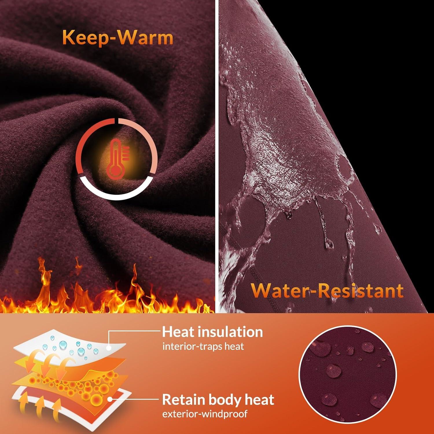 imagebaleaf Womens Fleece Lined Leggings Water Resistant High Waisted Thermal Warm Winter Tights Ski Hiking Pants with PocketsWine Red