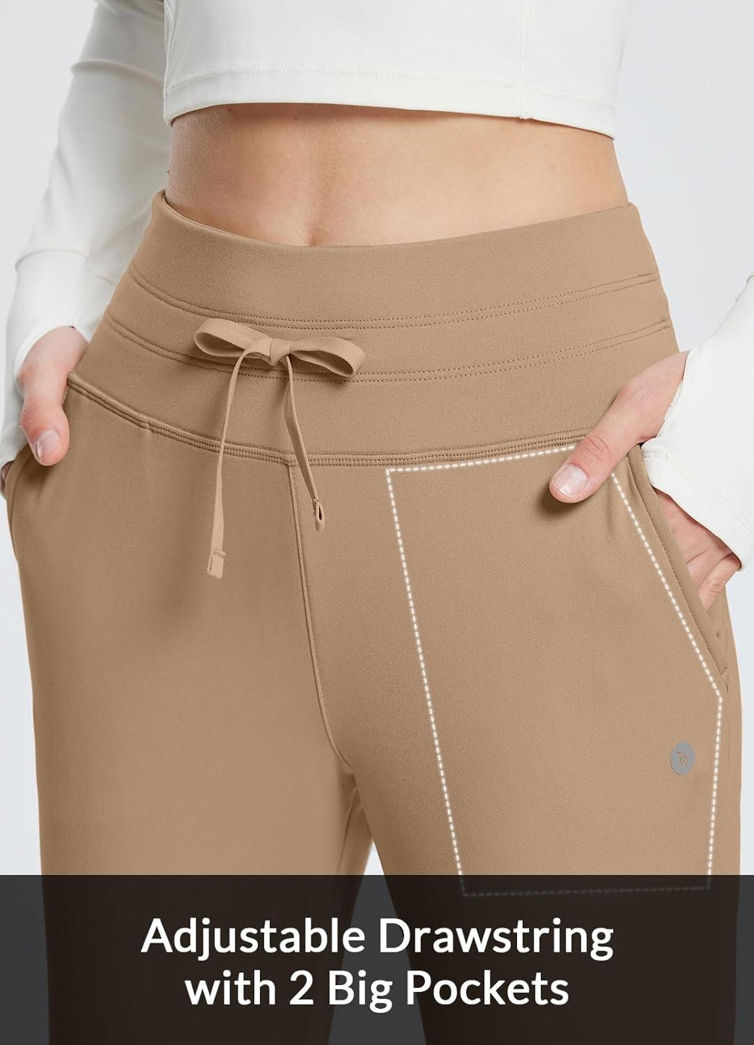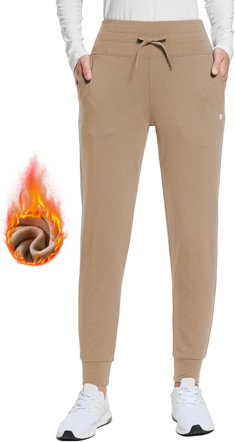 baleaf Women's Fleece Lined Pants Water-Resistant Sweatpants Winter Thermal Ski Hiking Running Joggers(Brown)