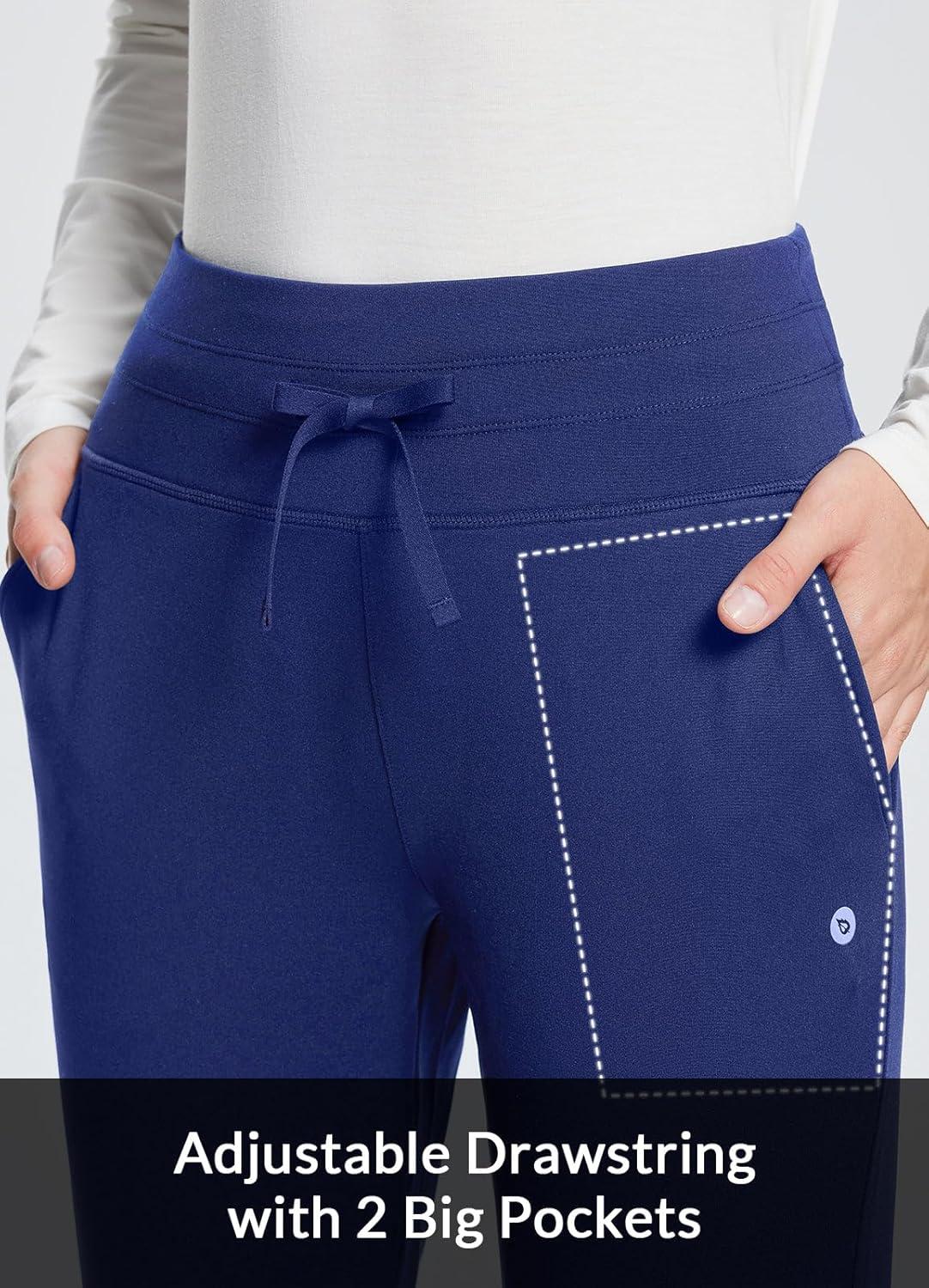 baleaf Women’s Fleece Lined Pants Water-Resistant Sweatpants Winter Thermal Ski Hiking Running Joggers(Navy Blue)