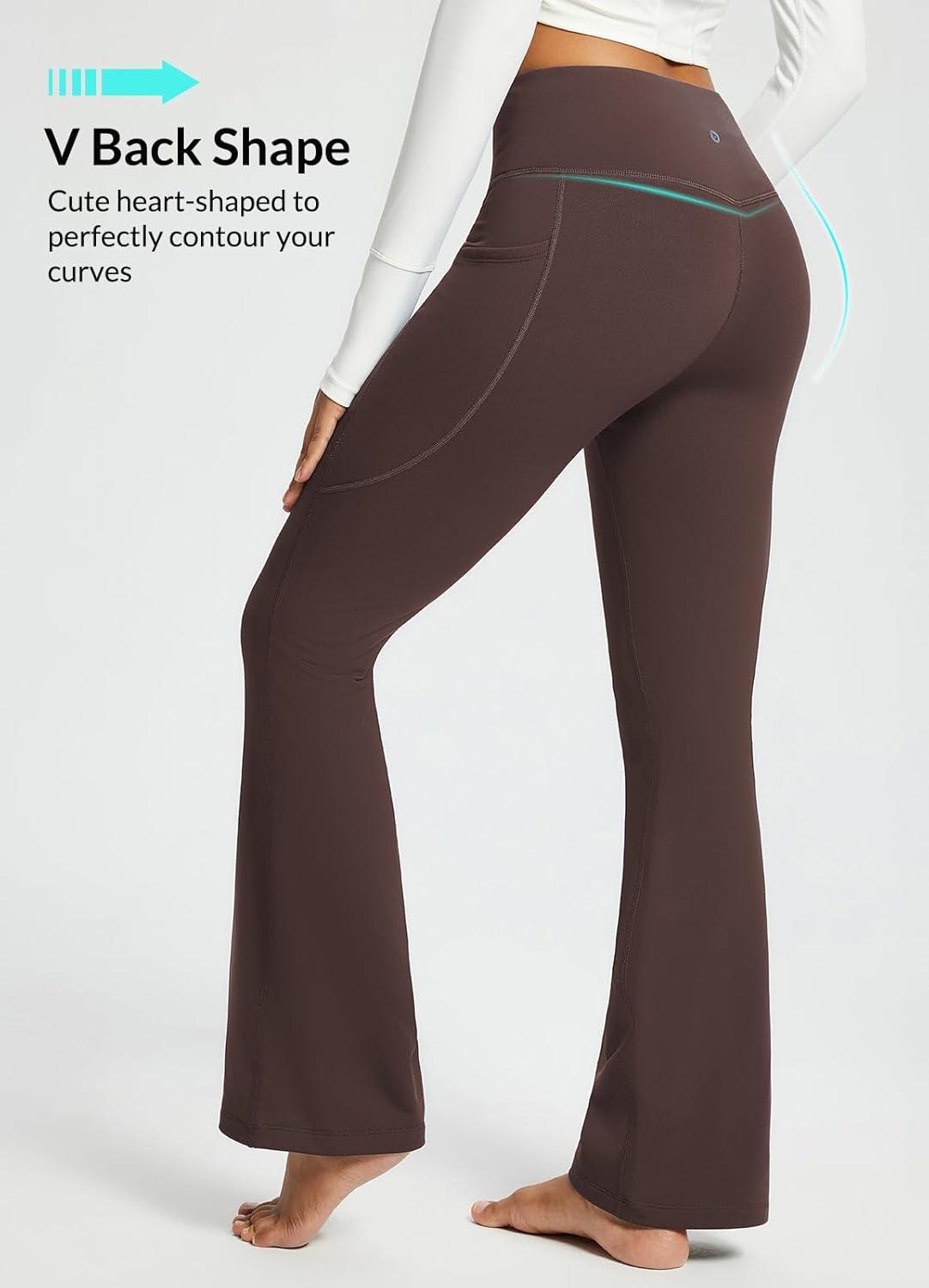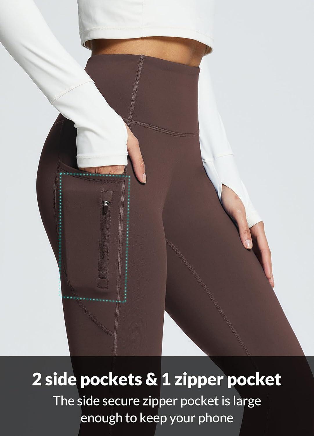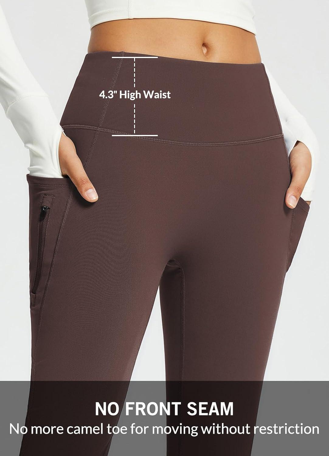 baleaf Women's Fleece Lined Pants Water Resistant Winter Thermal Warm Flare Leggings Bell Bottom Yoga Pants with Pockets(Dark Brown)