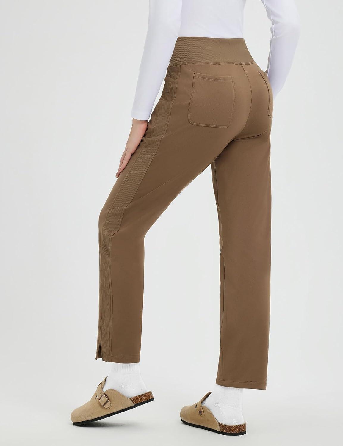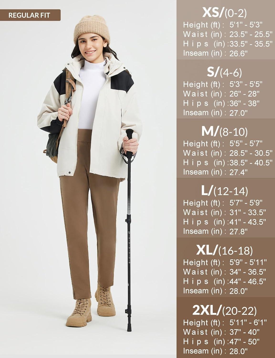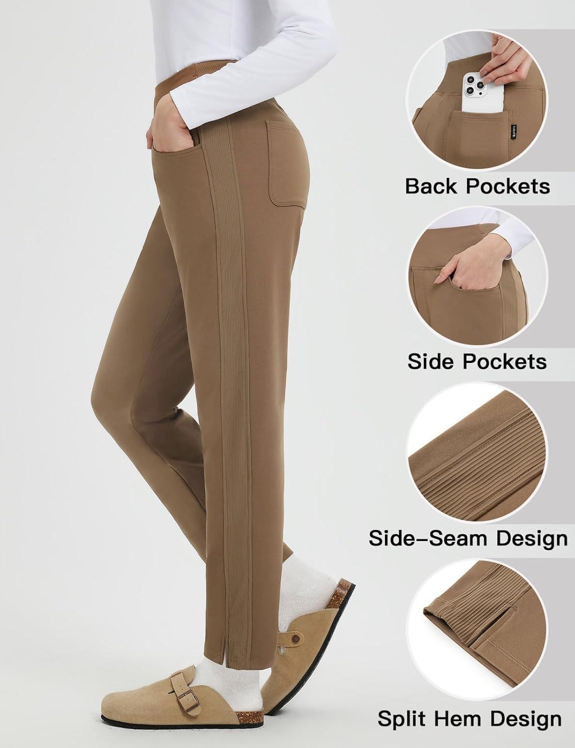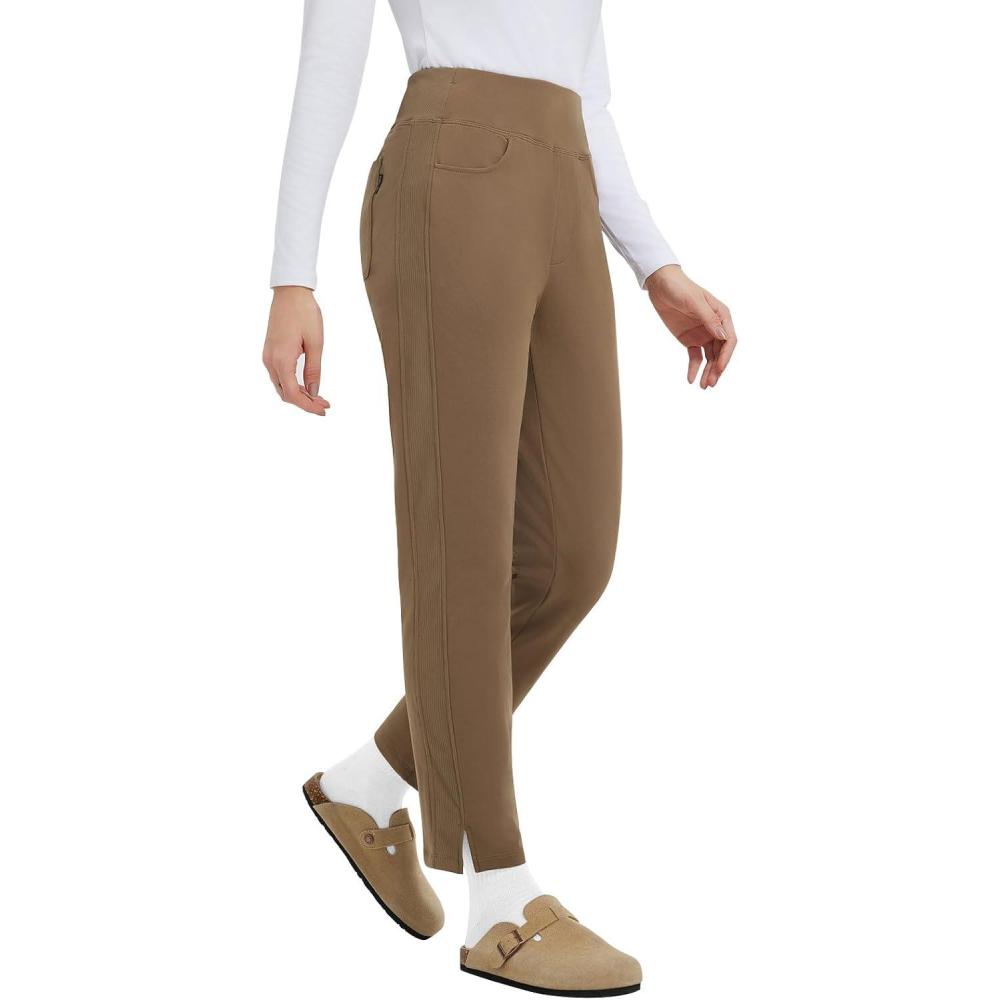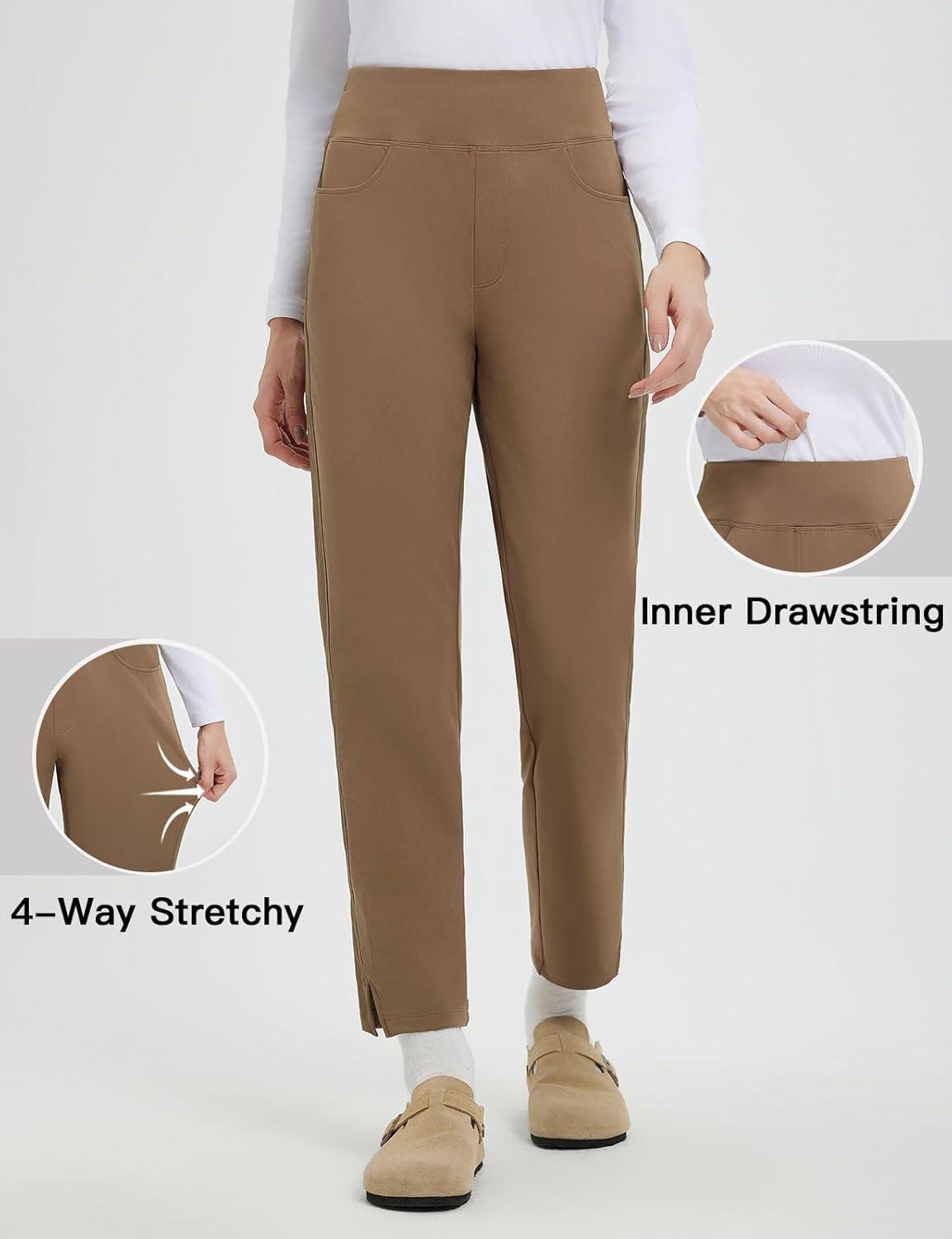 imagebaleaf Womens Fleece Lined Pants Winter Thermal Travel Pants Water Resistant Cold Weather Golf Hiking Pockets WorkBrown