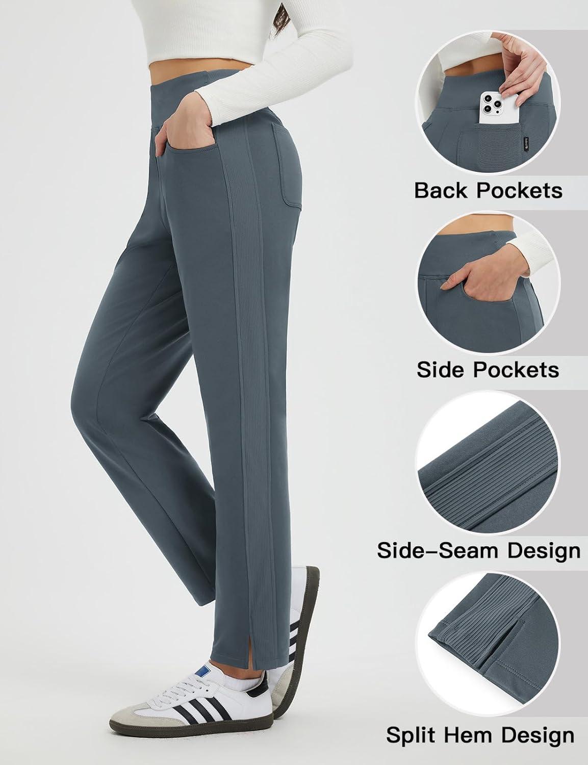 imagebaleaf Womens Fleece Lined Pants Winter Thermal Travel Pants Water Resistant Cold Weather Golf Hiking Pockets WorkDark Gray