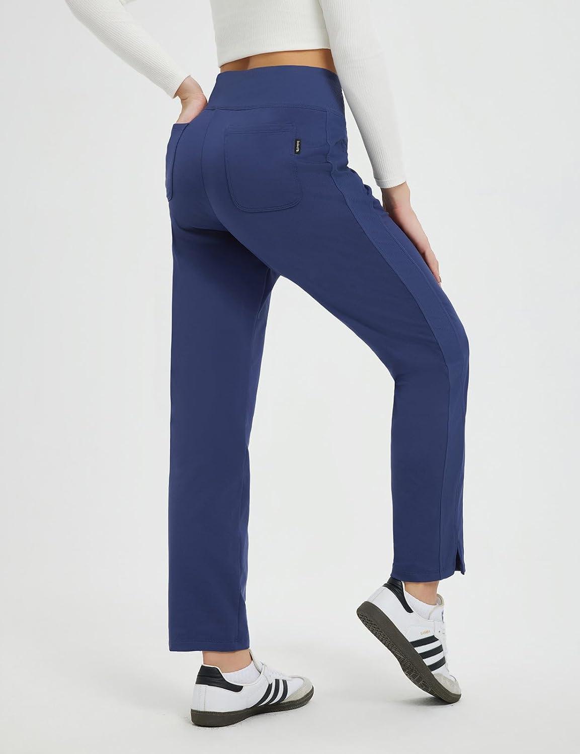 baleaf Women’s Fleece Lined Pants Winter Thermal Travel Pants Water Resistant Cold Weather Golf Hiking Pockets Work(Navy Blue)