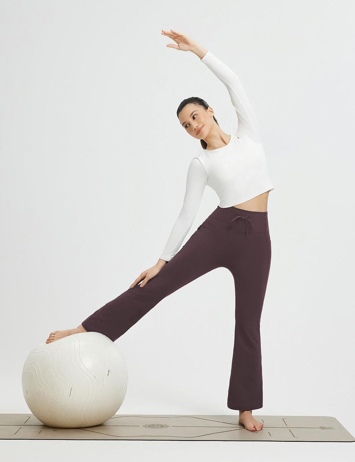 baleaf Women's Fleece Lined Pants Winter Thermal Warm Hiking Yoga Pants with Zipper Pockets Bootcut High Waist Flare Leggings(Dark Brown)