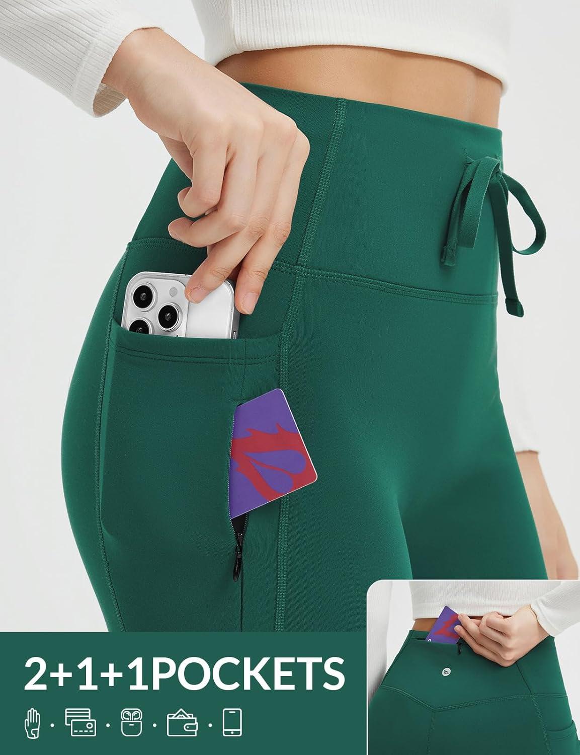 imagebaleaf Womens Fleece Lined Pants Winter Thermal Warm Hiking Yoga Pants with Zipper Pockets Bootcut High Waist Flare LeggingsDark Green