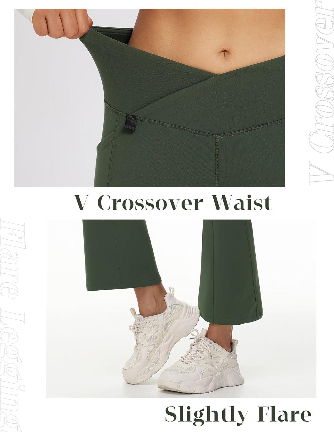 imagebaleaf Womens Fleece Lined Pants Winter Thermal Water Resistant Crossover Flare Leggings Warm Bootcut Hiking OutdoorArmy Green