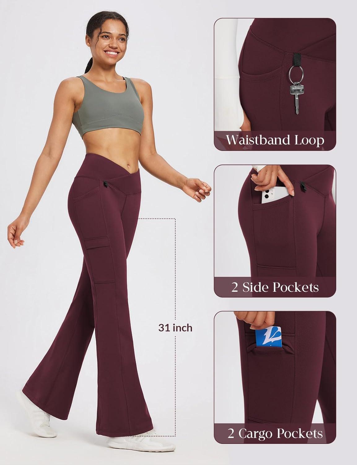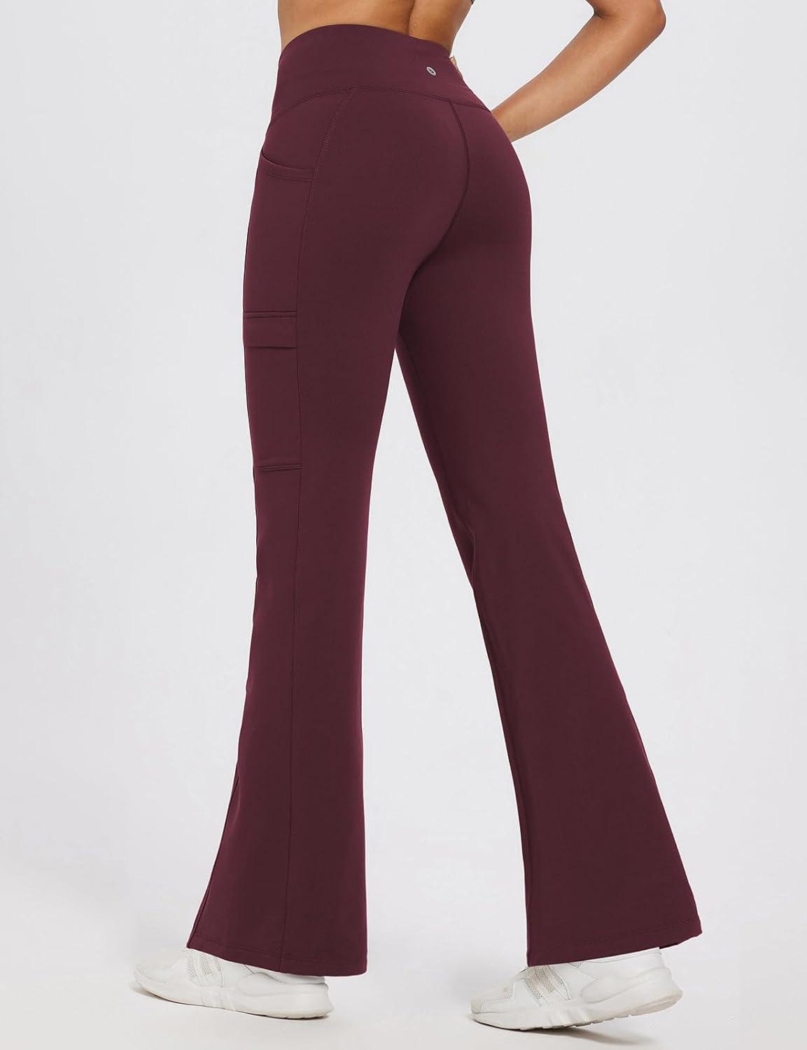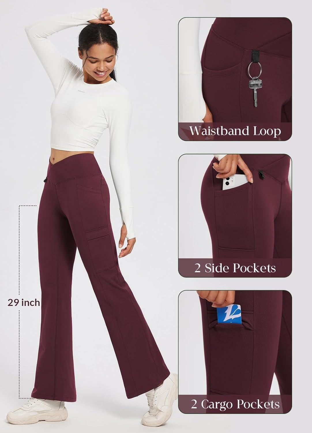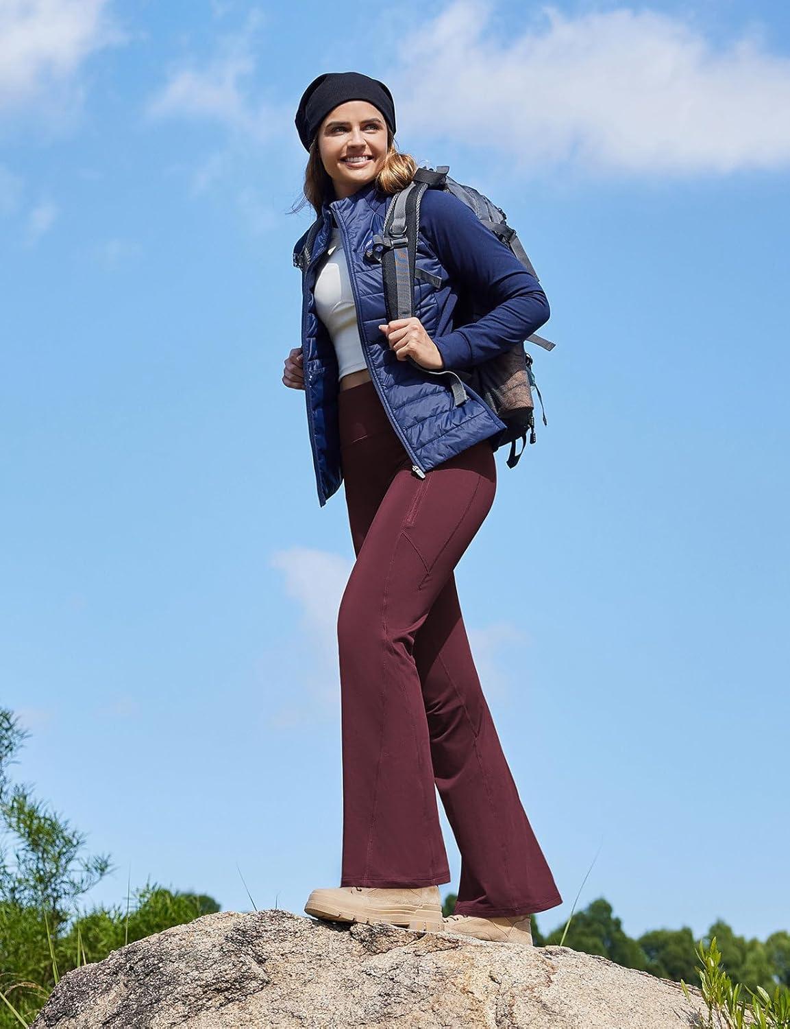 baleaf Women's Fleece Lined Pants Winter Thermal Water Resistant Crossover Flare Leggings Warm Bootcut Hiking Outdoor(Wine Red)