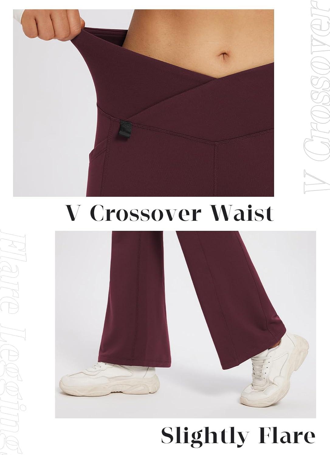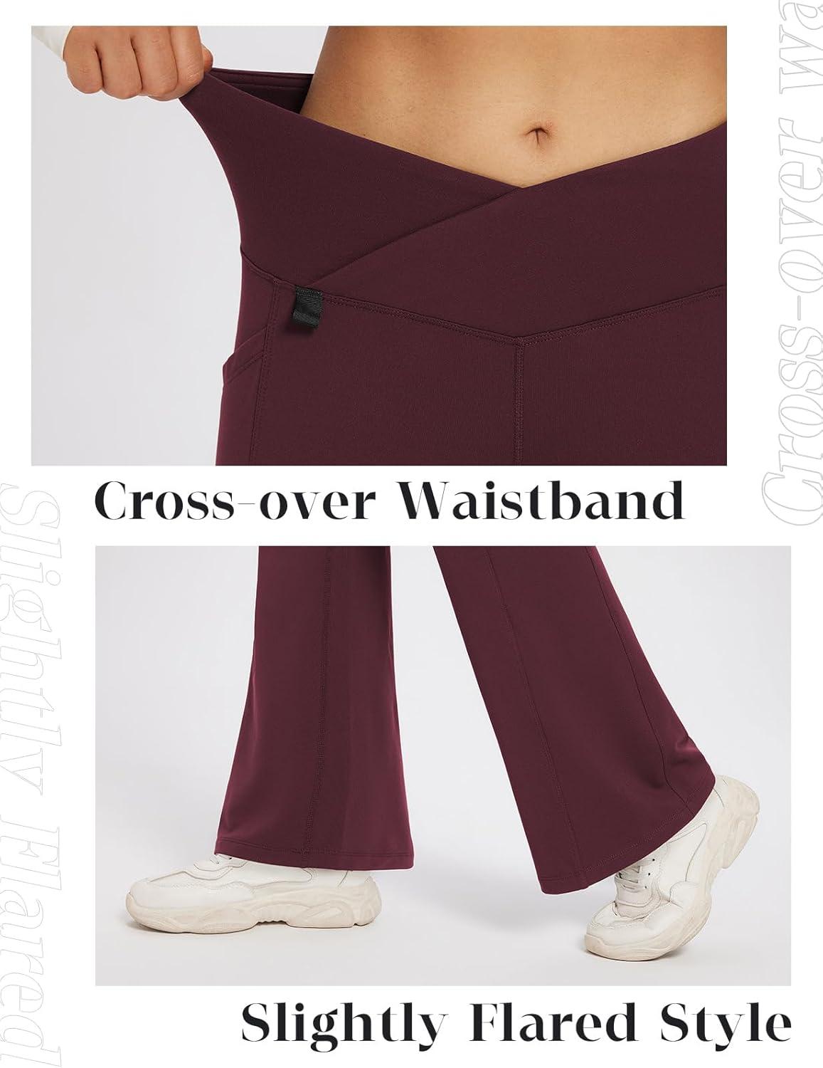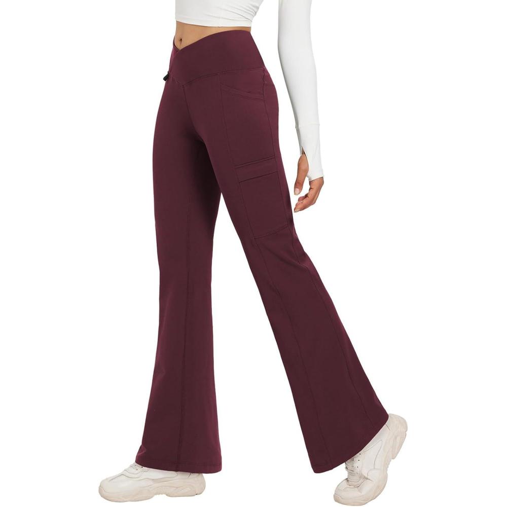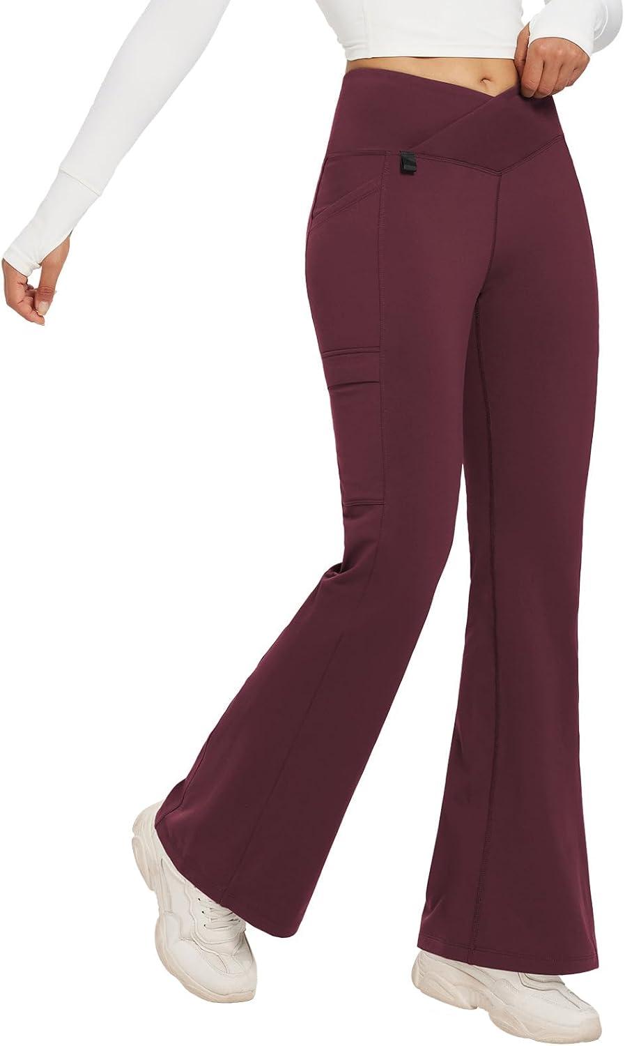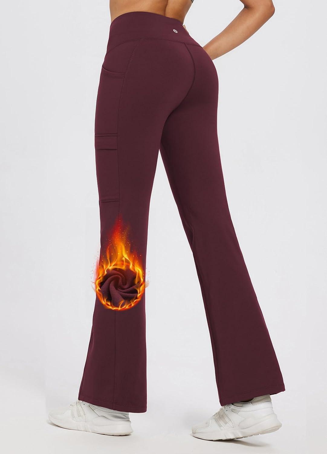 imagebaleaf Womens Fleece Lined Pants Winter Thermal Water Resistant Crossover Flare Leggings Warm Bootcut Hiking OutdoorWine Red
