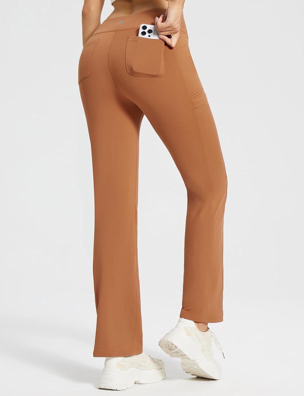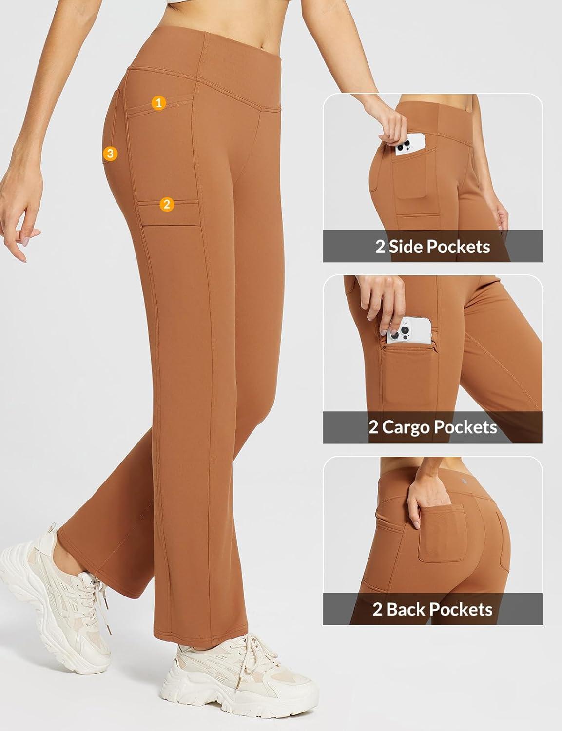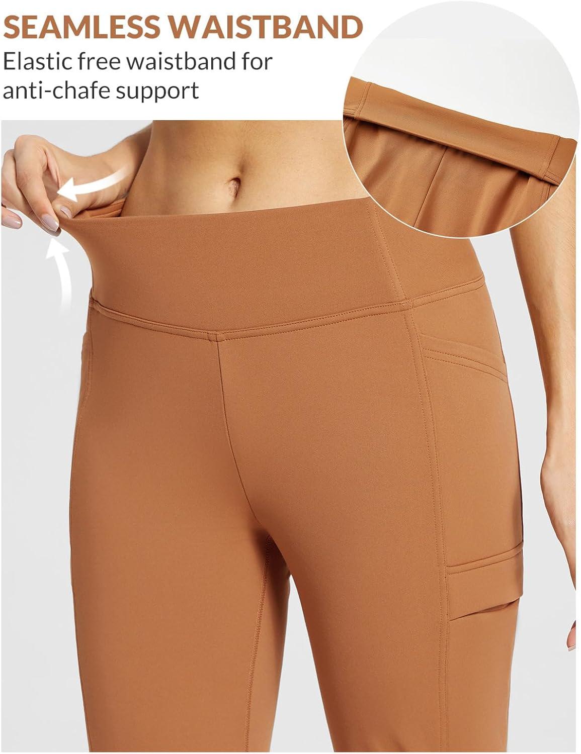 baleaf Women’s Fleece Lined Pants Yoga Pants Warm Thermal Winter High Waisted Straight Leg Leggings with 6 Pockets(Light Brown)