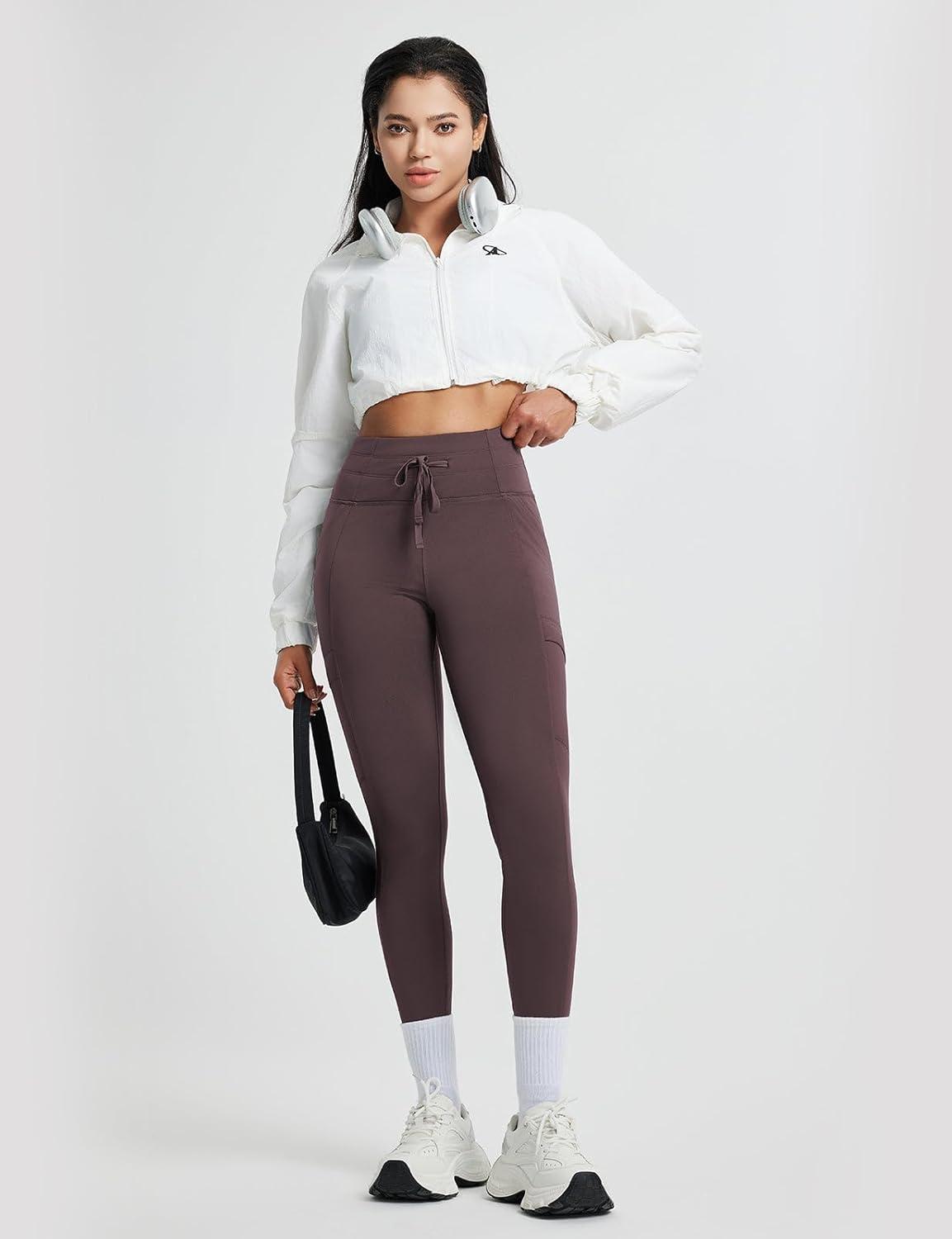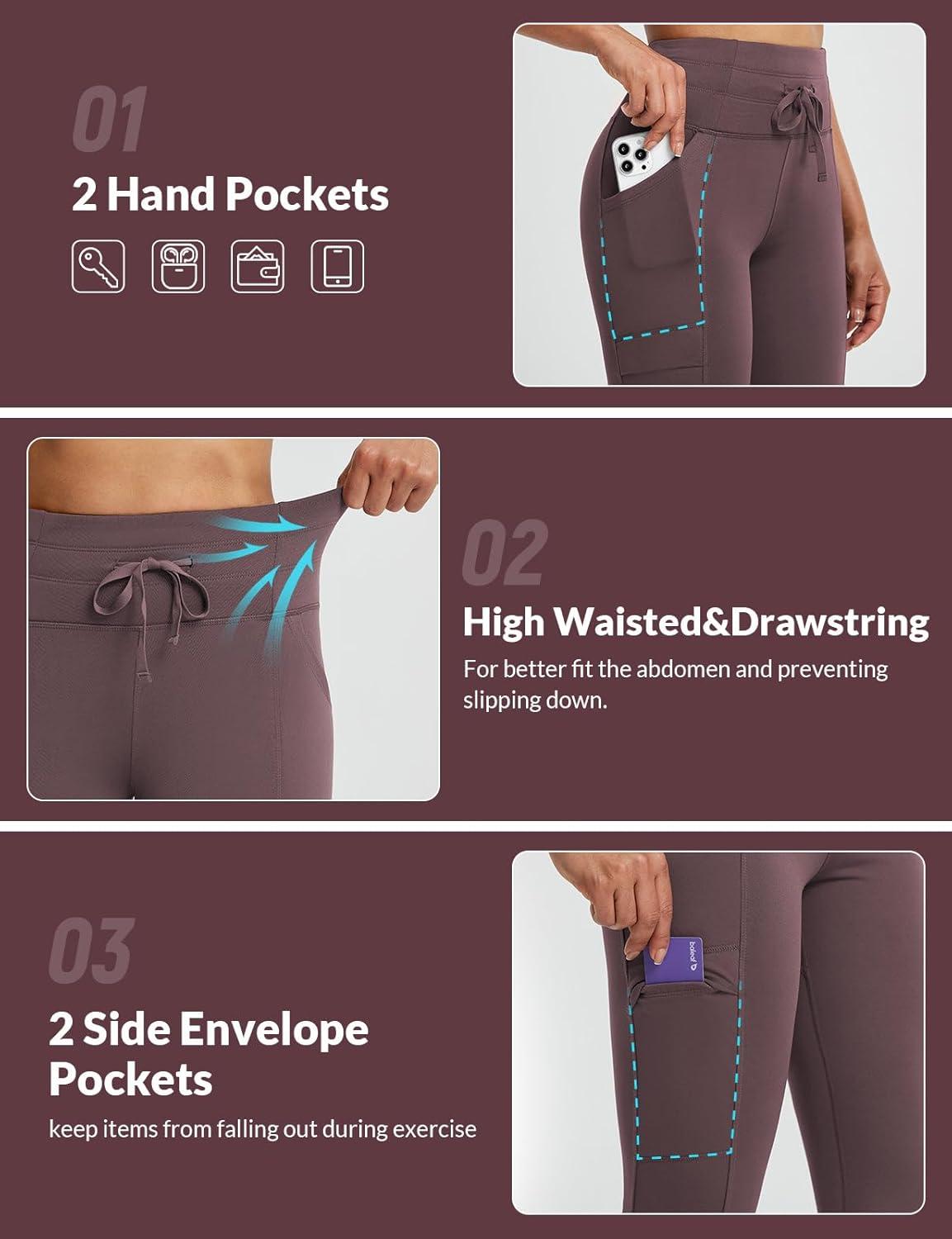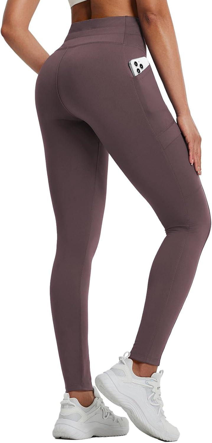 baleaf Women’s Fleece Lined Thermal Leggings High Waisted Warm Winter Running Hiking Pants with Pockets Water Resistant(Dark Brown)