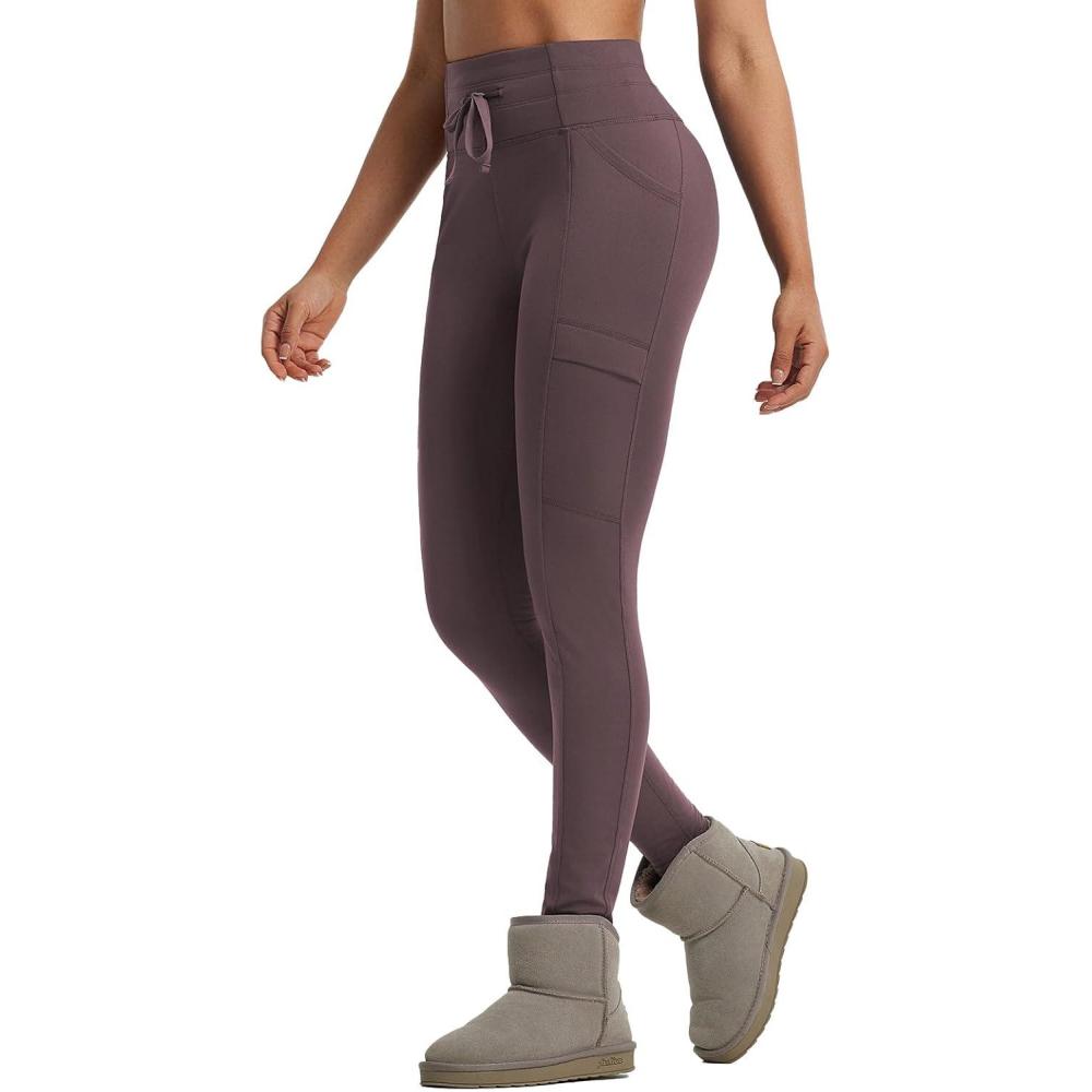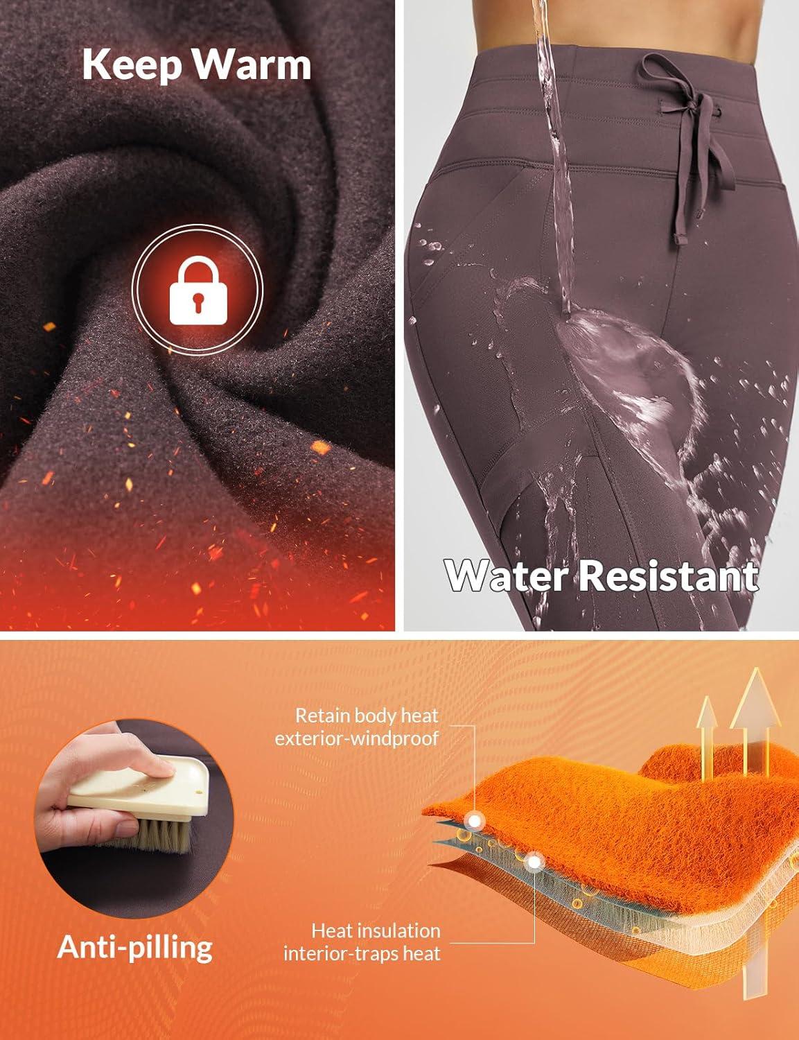 imagebaleaf Womens Fleece Lined Thermal Leggings High Waisted Warm Winter Running Hiking Pants with Pockets Water ResistantDark Brown