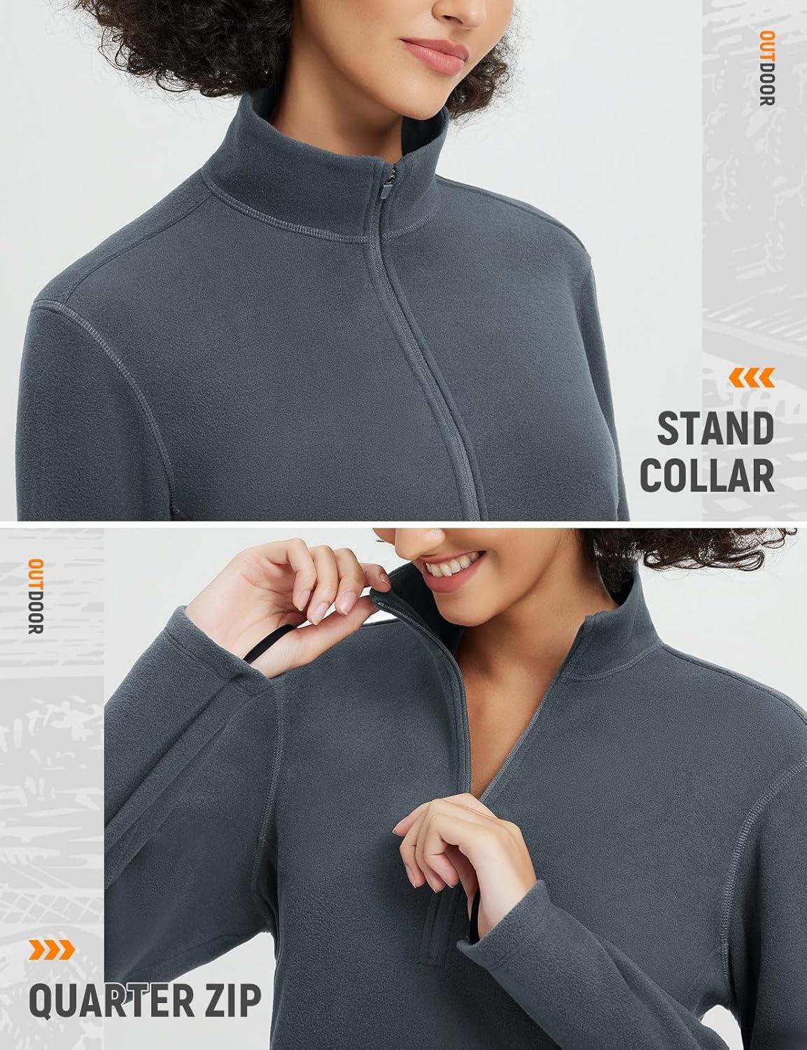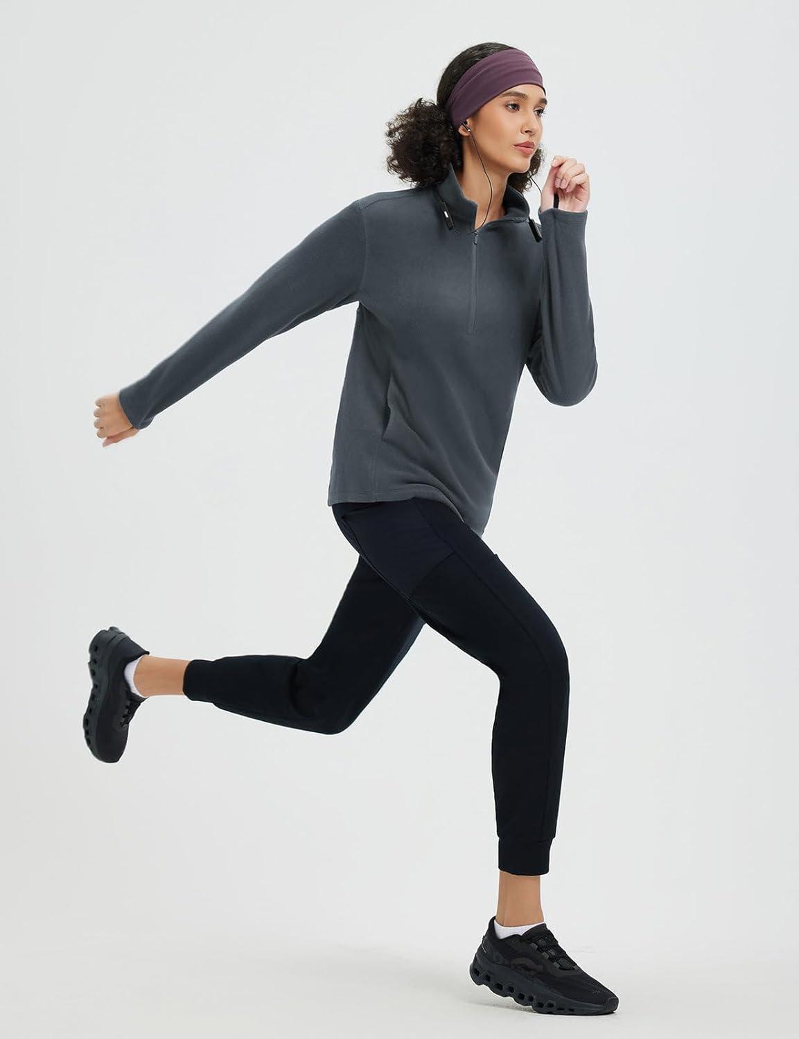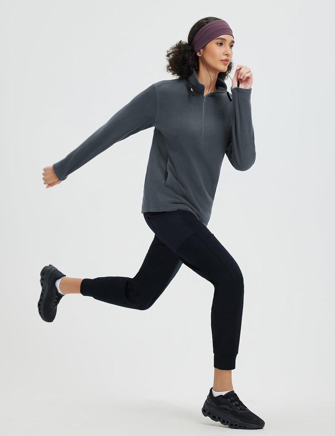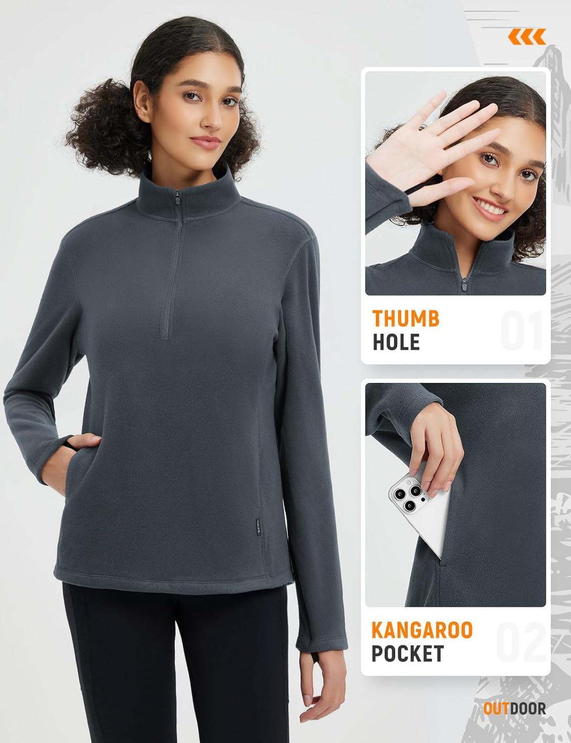 baleaf Women’s Fleece Quarter Zip Pullover Long Sleeve Thermal Tops Cold Weather Hiking Running Gear with Kangaroo Pocket(Dark Gray)