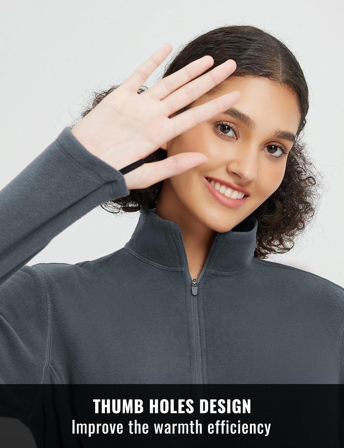 baleaf Women's Fleece Quarter Zip Pullover Long Sleeve Thermal Tops Cold Weather Hiking Running Gear with Zipper Pockets(Dark Gray)