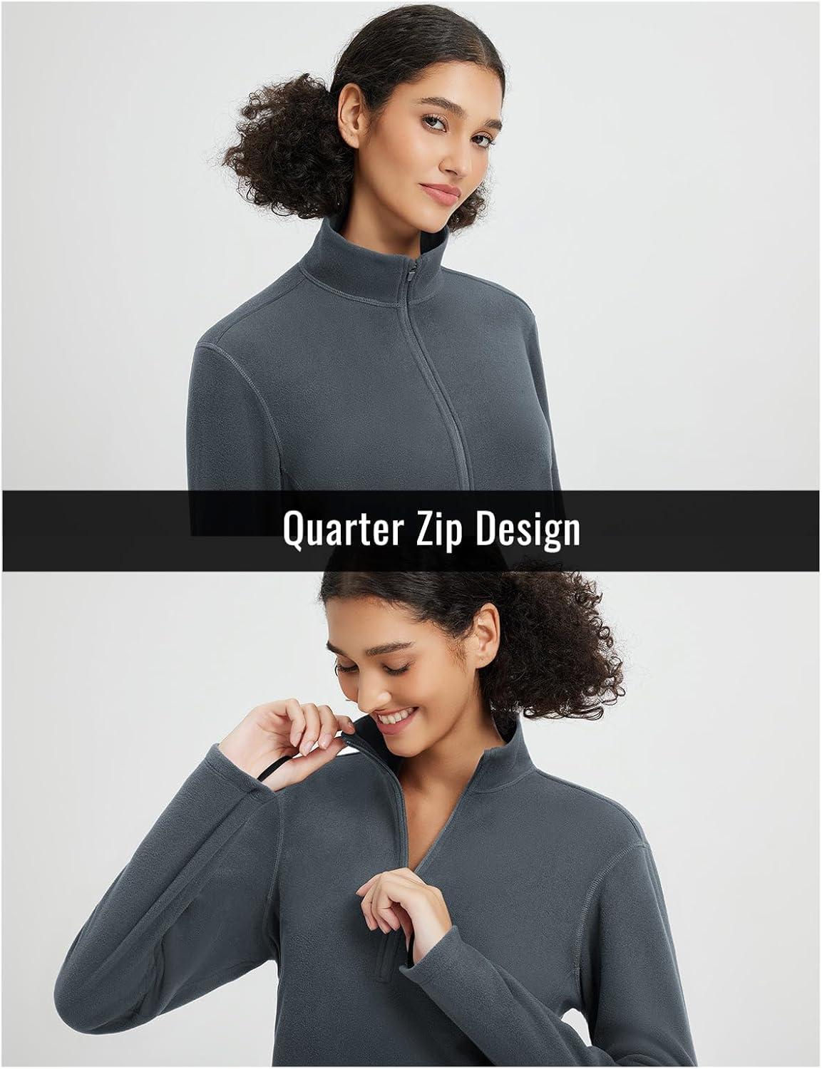 imagebaleaf Womens Fleece Quarter Zip Pullover Long Sleeve Thermal Tops Cold Weather Hiking Running Gear with Zipper PocketsDark Gray