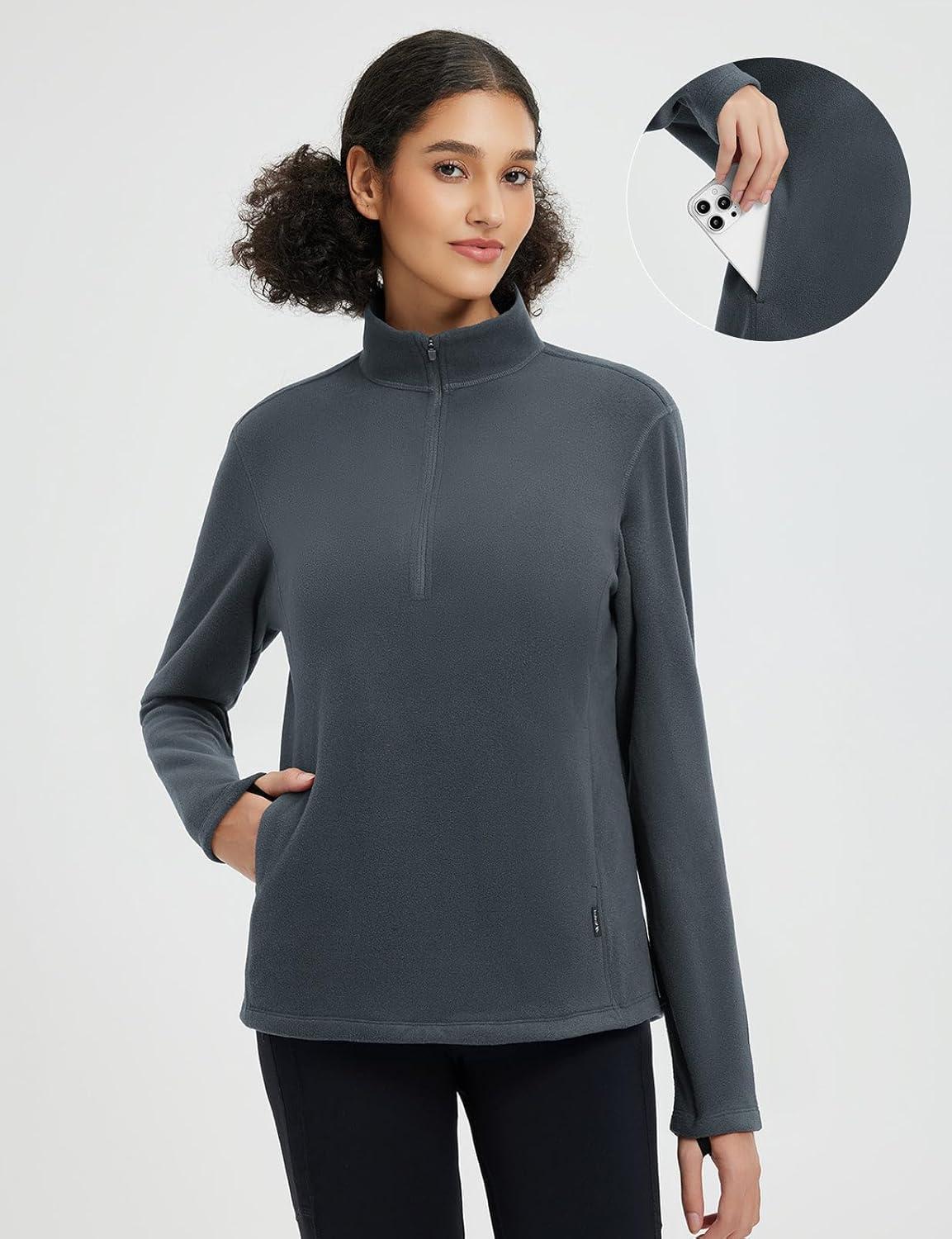baleaf Women’s Fleece Quarter Zip Pullover Long Sleeve Thermal Tops Cold Weather Hiking Running Gear with Zipper Pockets(Dark Gray)