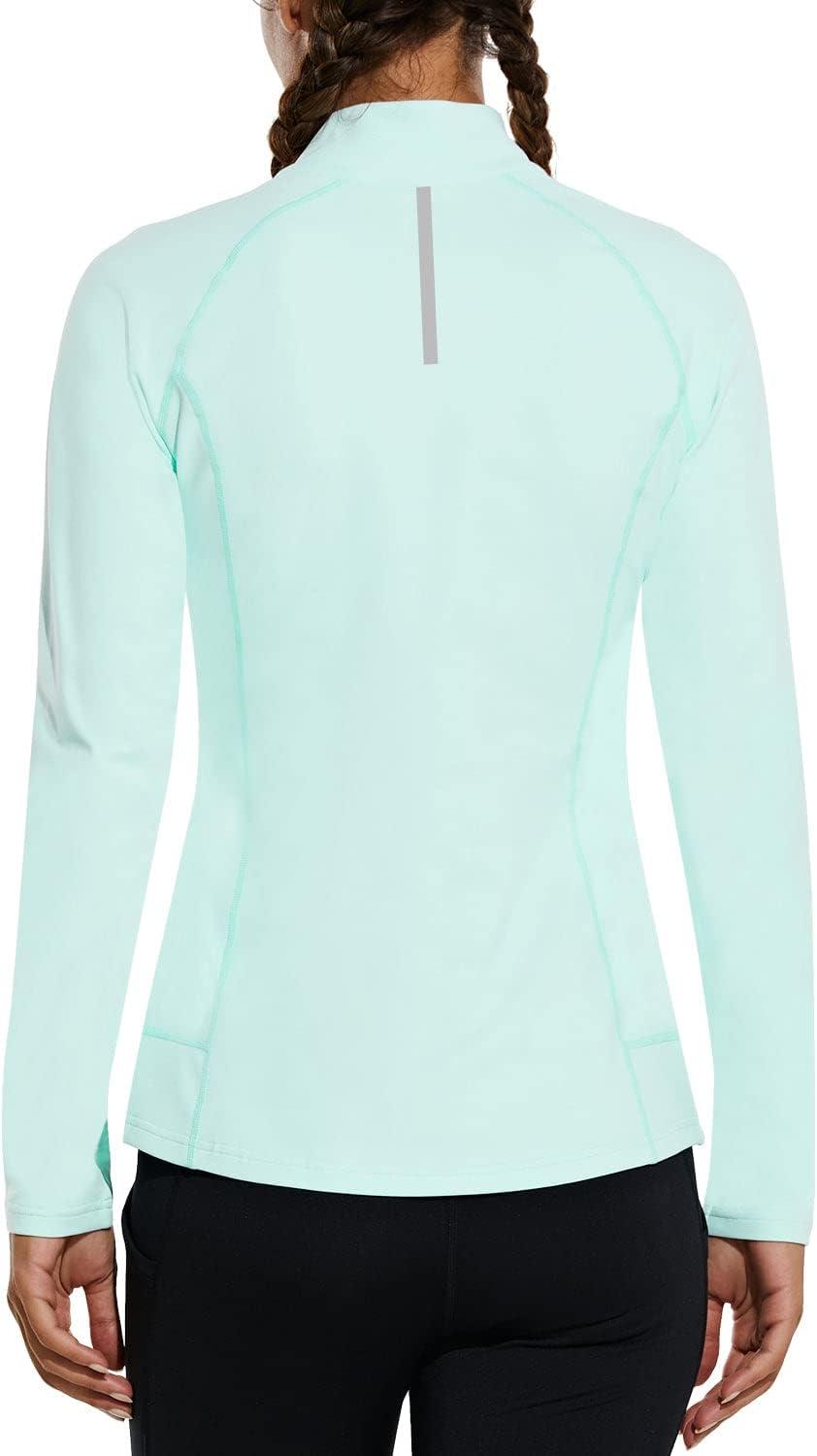 imagebaleaf Womens Fleece Running Jacket HalfZip Cold Weather Gear Thermal Shirts Tops Athletic Pullover Workout WinterGreen