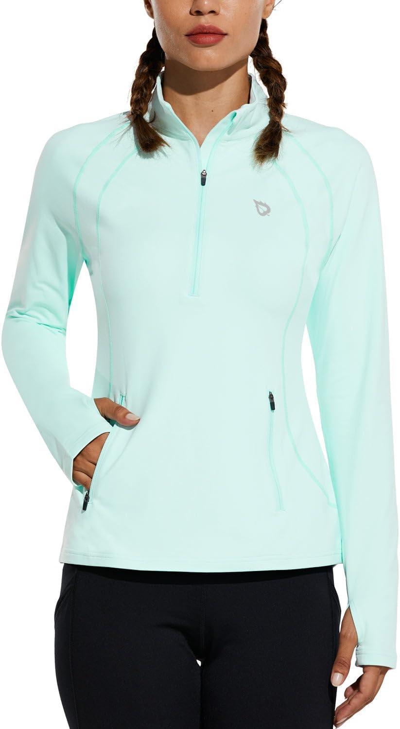 baleaf Women’s Fleece Running Jacket Half-Zip Cold Weather Gear Thermal Shirts Tops Athletic Pullover Workout Winter(Blue)