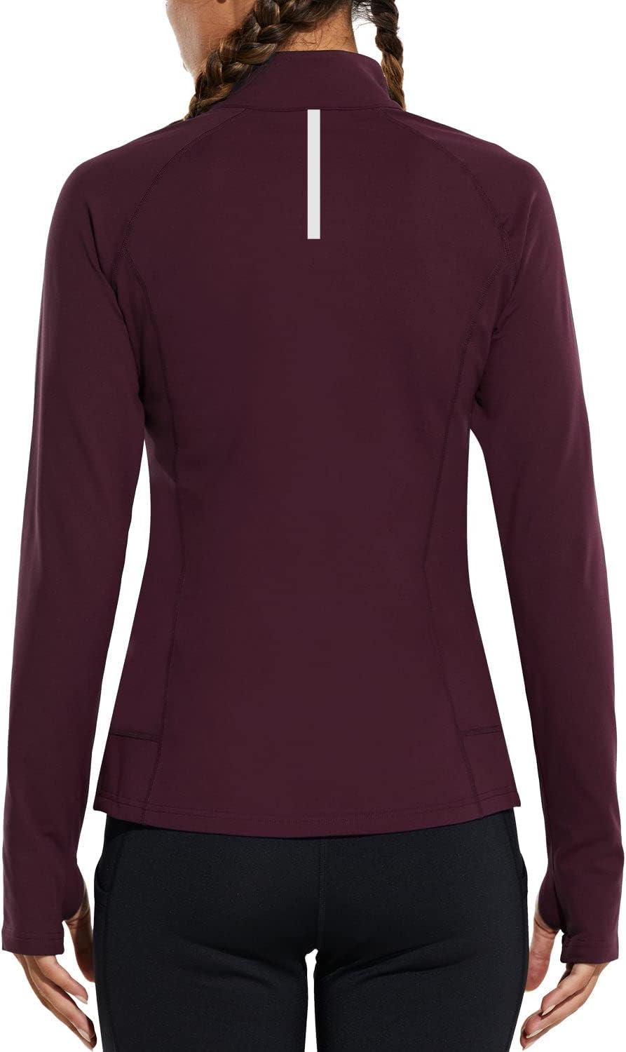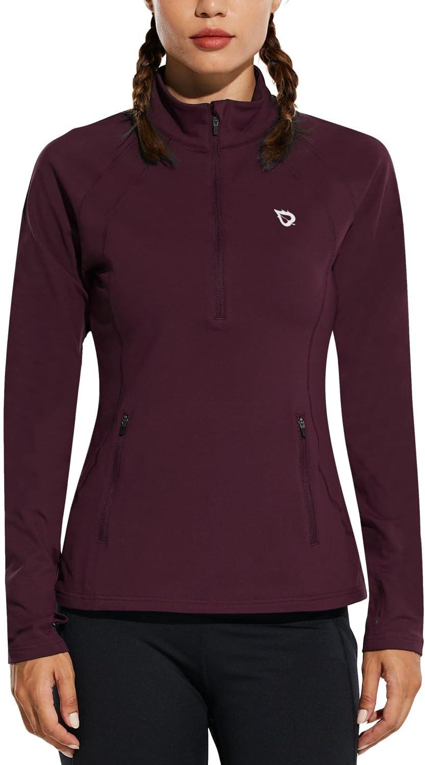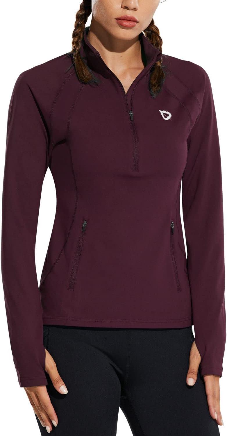 baleaf Women’s Fleece Running Jacket Half-Zip Cold Weather Gear Thermal Shirts Tops Athletic Pullover Workout Winter(Red)