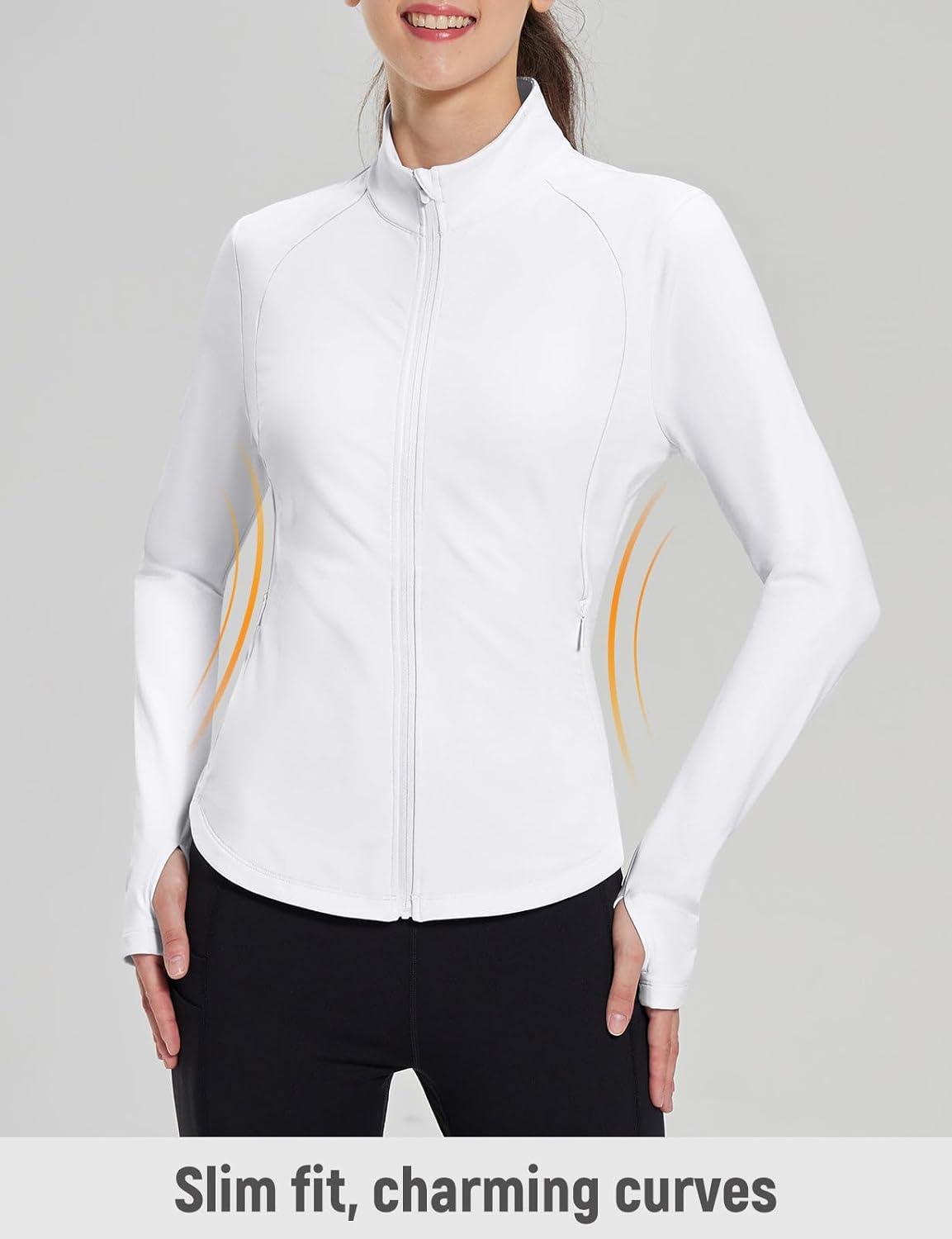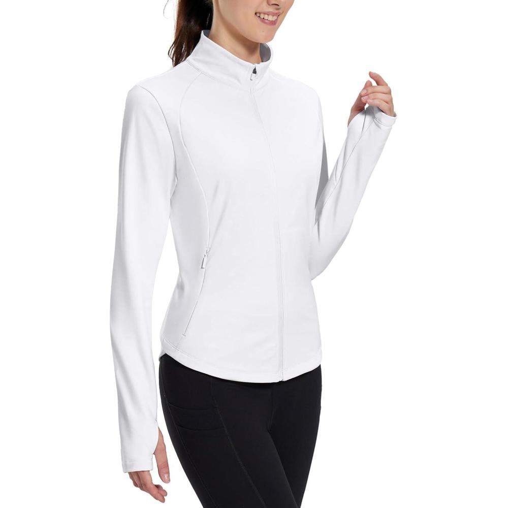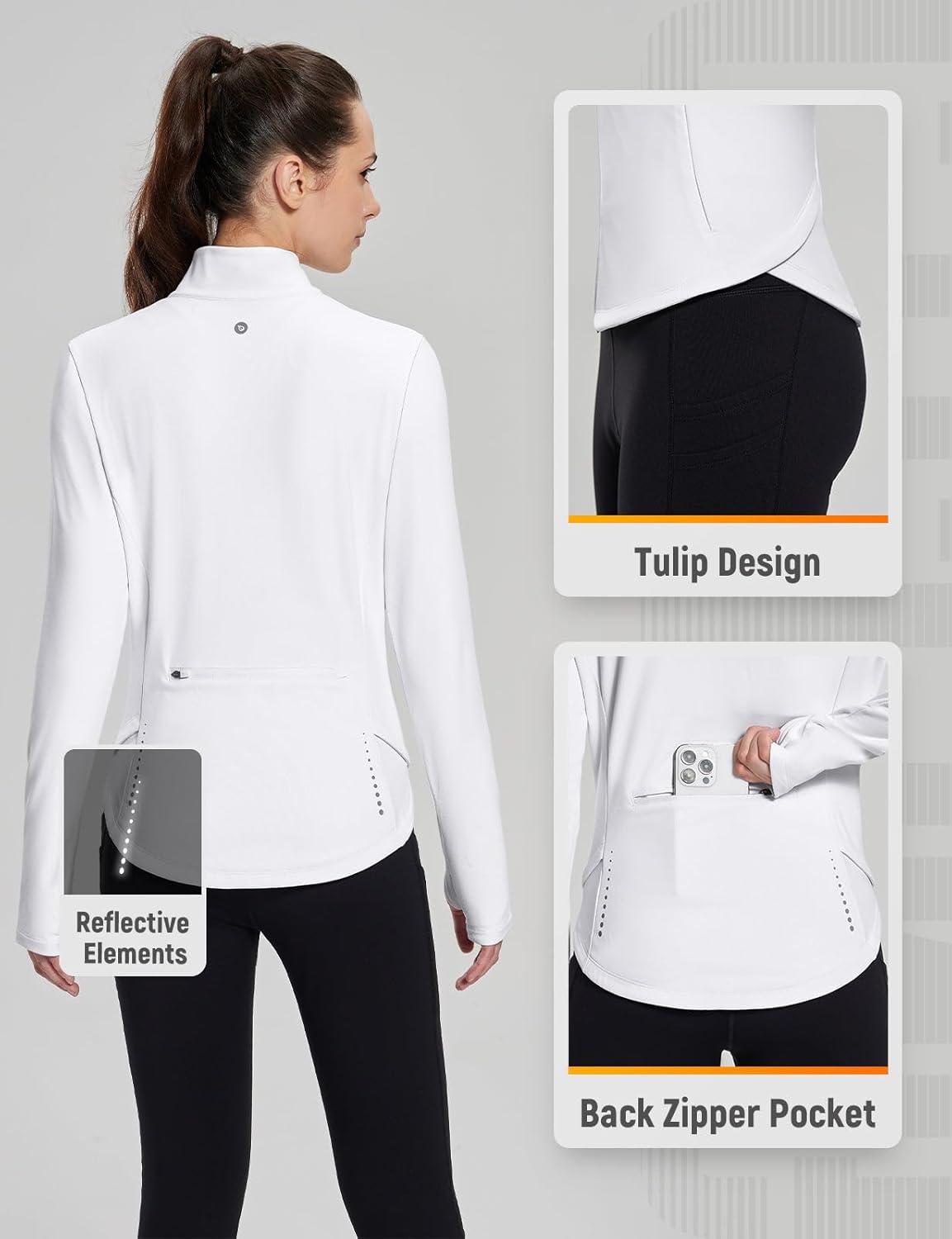 baleaf Women’s Fleece Running Jacket Water Resistant Full Zip Winter Cold Weather Gear Thermal Cycling Workout Jackets(B-white)