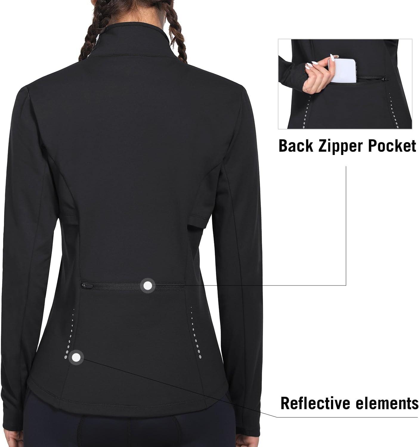 imagebaleaf Womens Fleece Running Jacket Water Resistant Full Zip Winter Cold Weather Gear Thermal Cycling Workout JacketsBlack