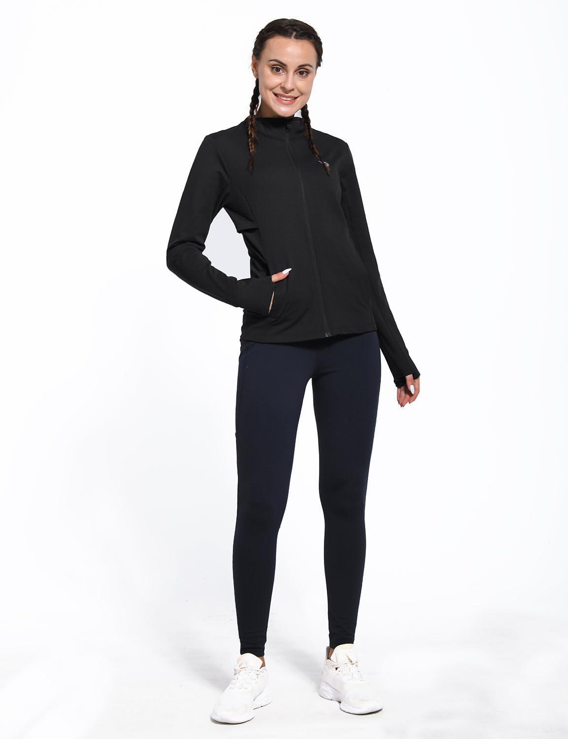 baleaf Women's Fleece Running Jacket Water Resistant Full Zip Winter Cold Weather Gear Thermal Cycling Workout Jackets(Black)