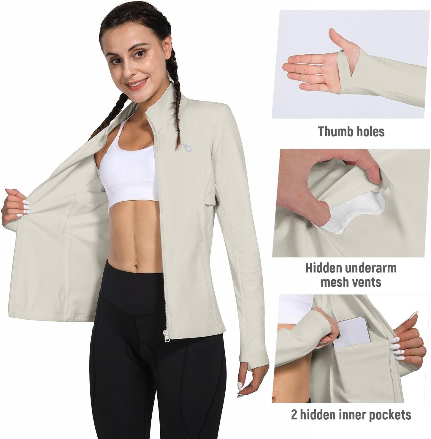 Thumb holes & Mesh Vents: This long sleeve track jacket also offers thumb holes to increase hand coverage and warmth during the cool weather. Hidden underarm mesh vents provide ventilation and prevent overheating