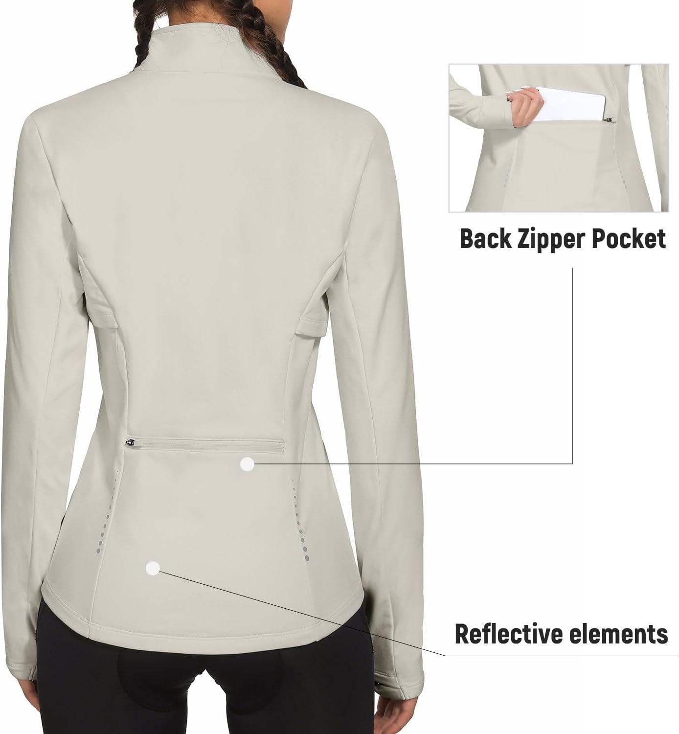 imagebaleaf Womens Fleece Running Jacket Water Resistant Full Zip Winter Cold Weather Gear Thermal Cycling Workout JacketsOatmeal Pink