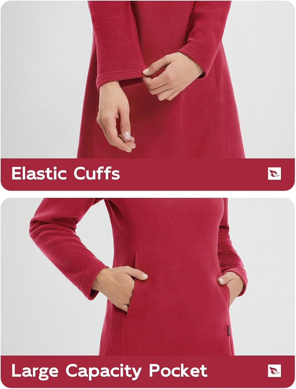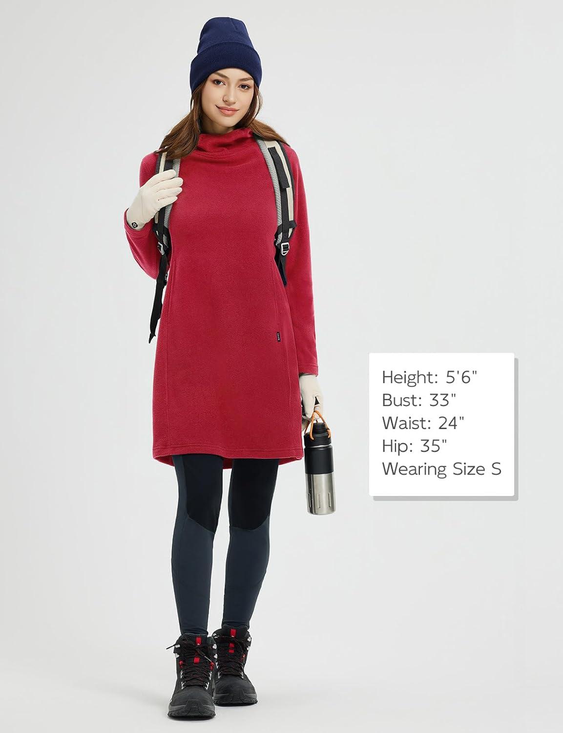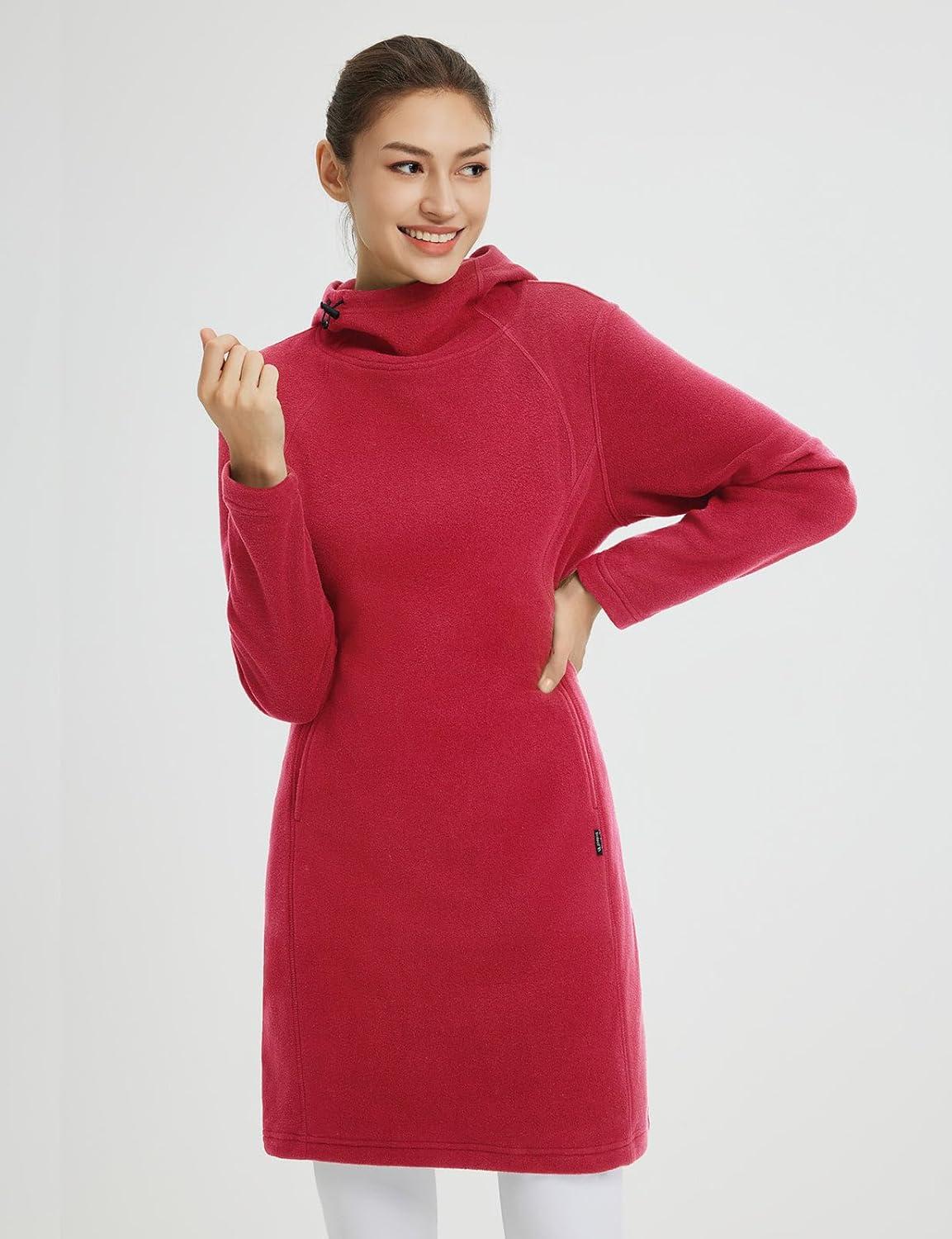 baleaf Women’s Fleece Sweatshirt Dress Thermal Long Winter Fall Tunic Dresses Outfits with Pocket Hooded Pullover(Red)