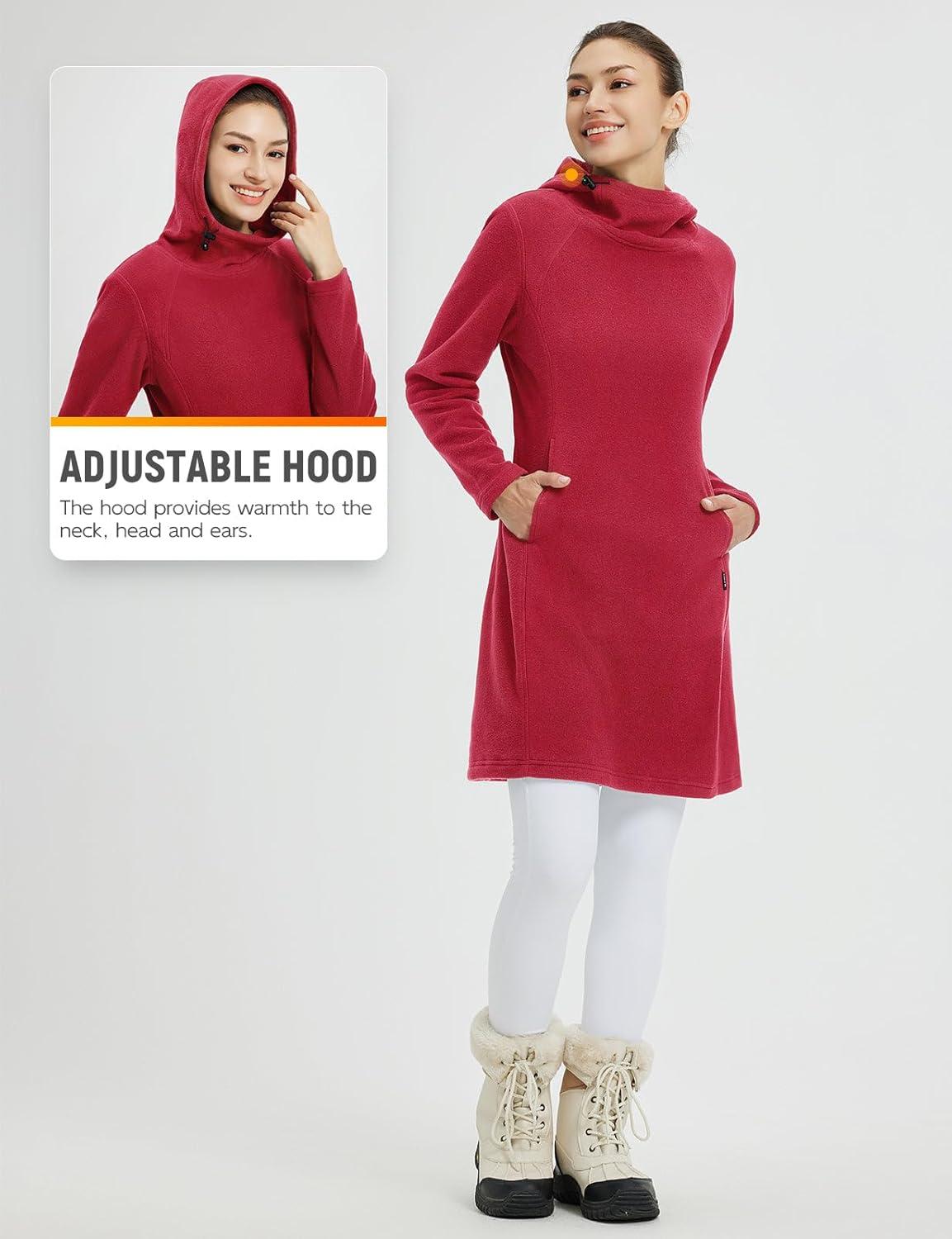 baleaf Women's Fleece Sweatshirt Dress Thermal Long Winter Fall Tunic Dresses Outfits with Pocket Hooded Pullover(Red)