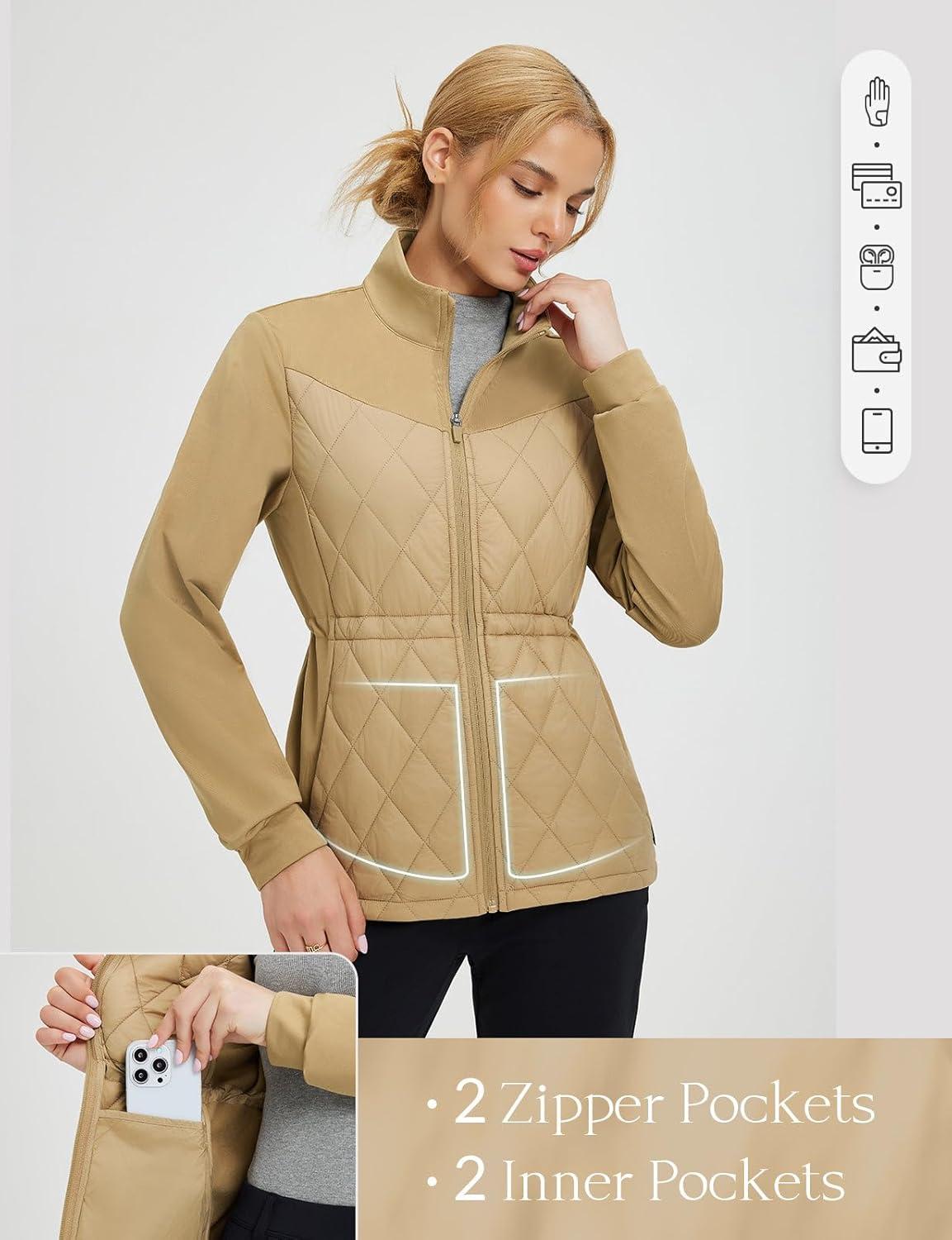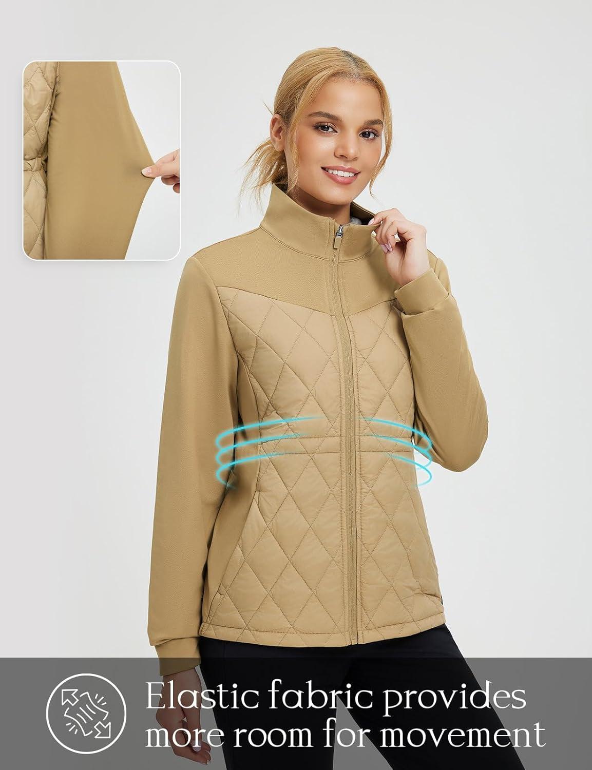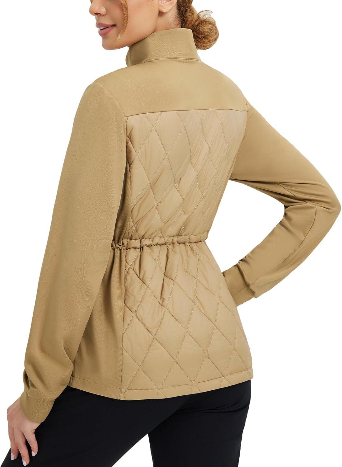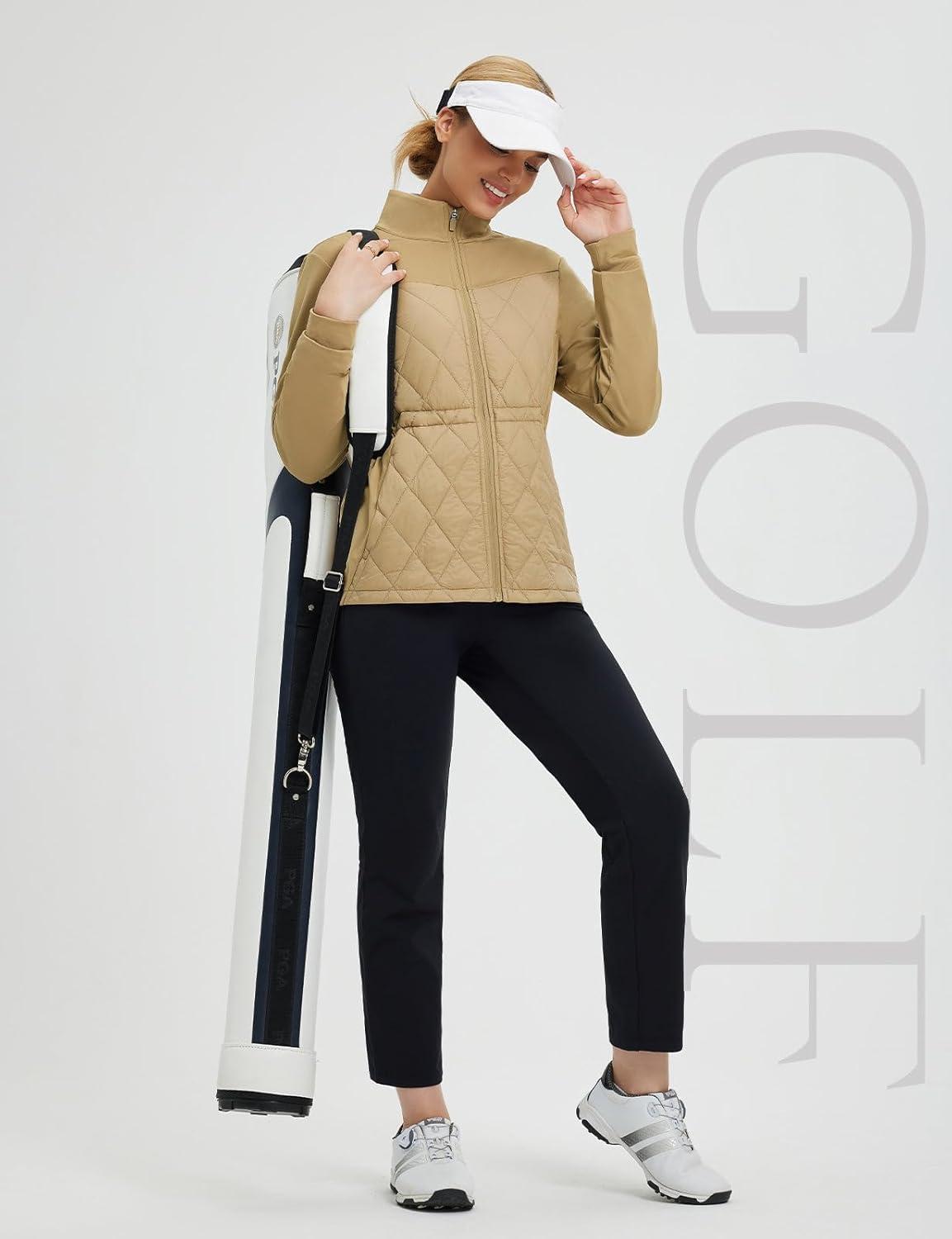 baleaf Women's Golf Quilted Jackets Winter Lightweight Warm Stand Collar Water Resistant Puffer Jacket 4 Pockets(Brown)