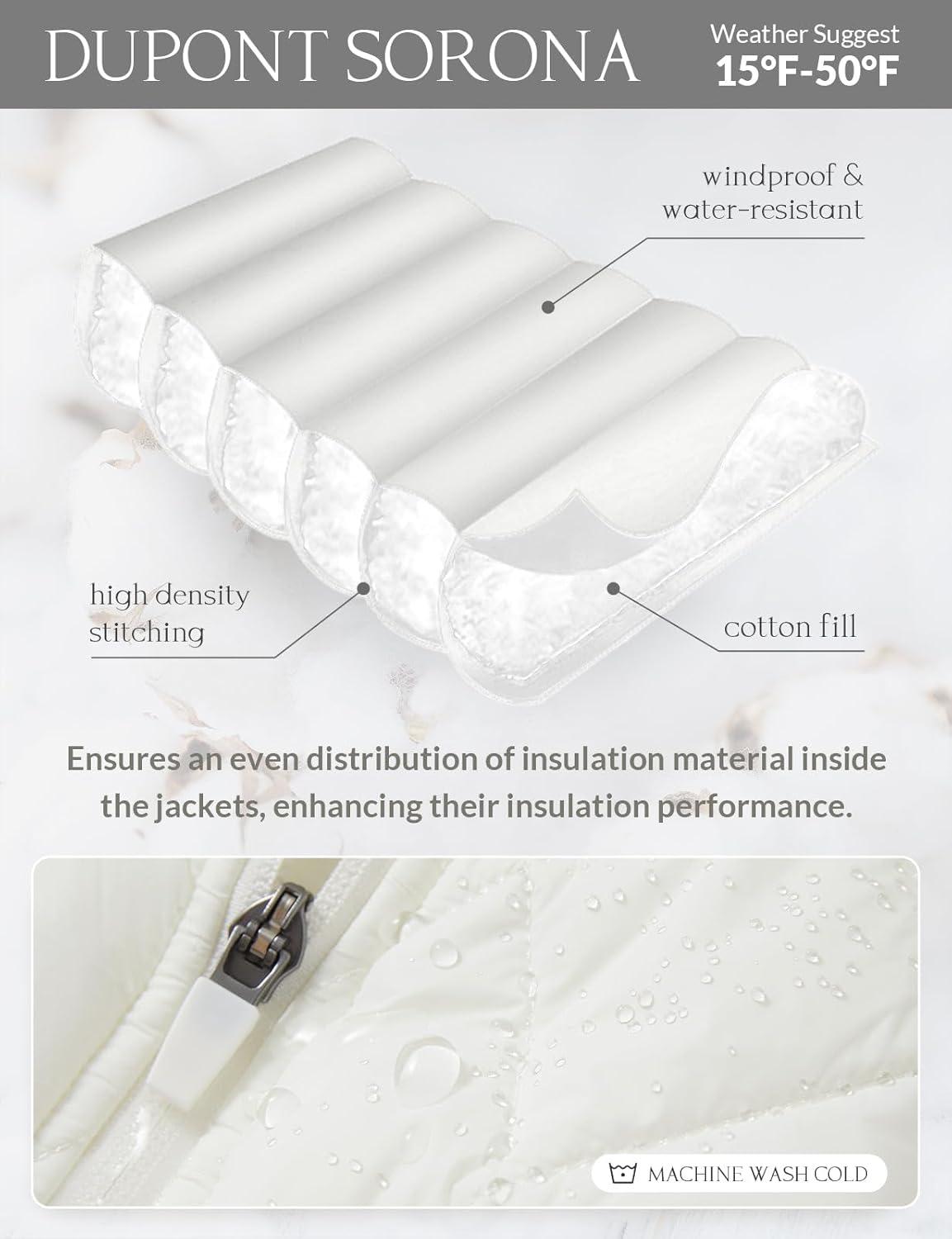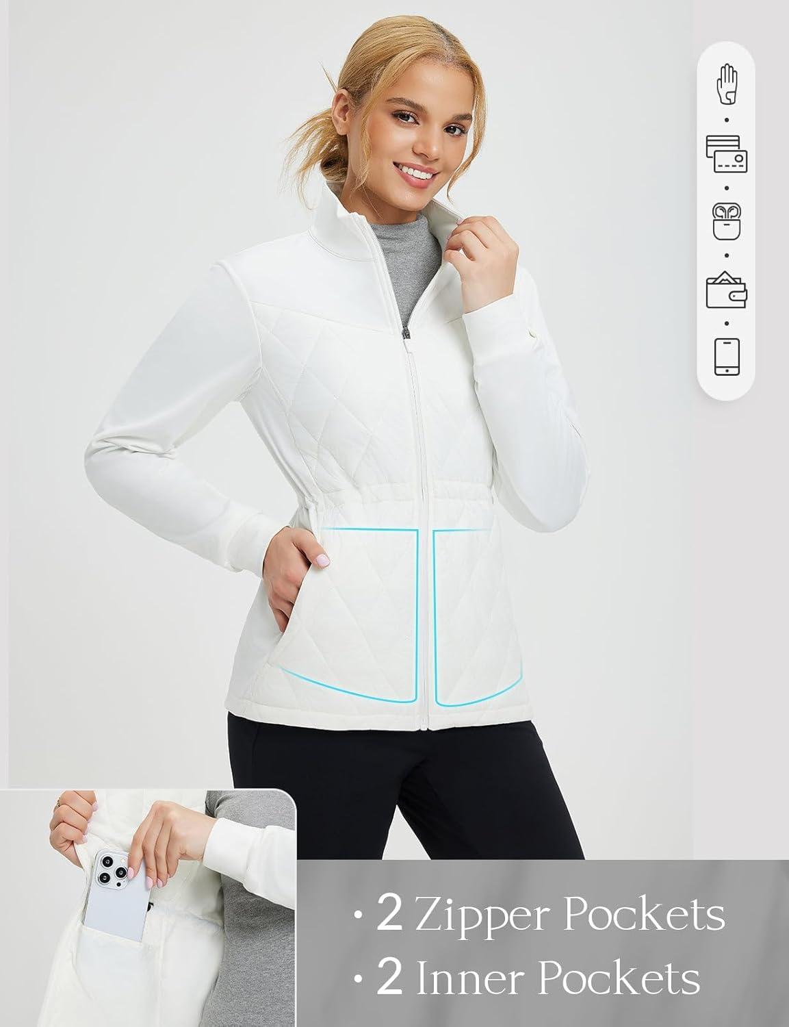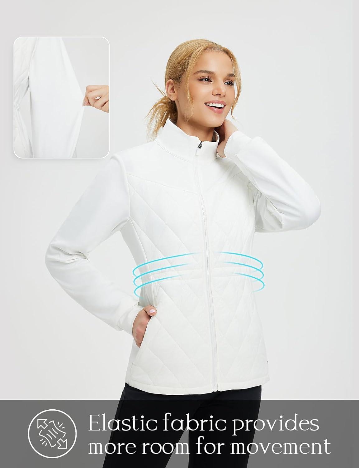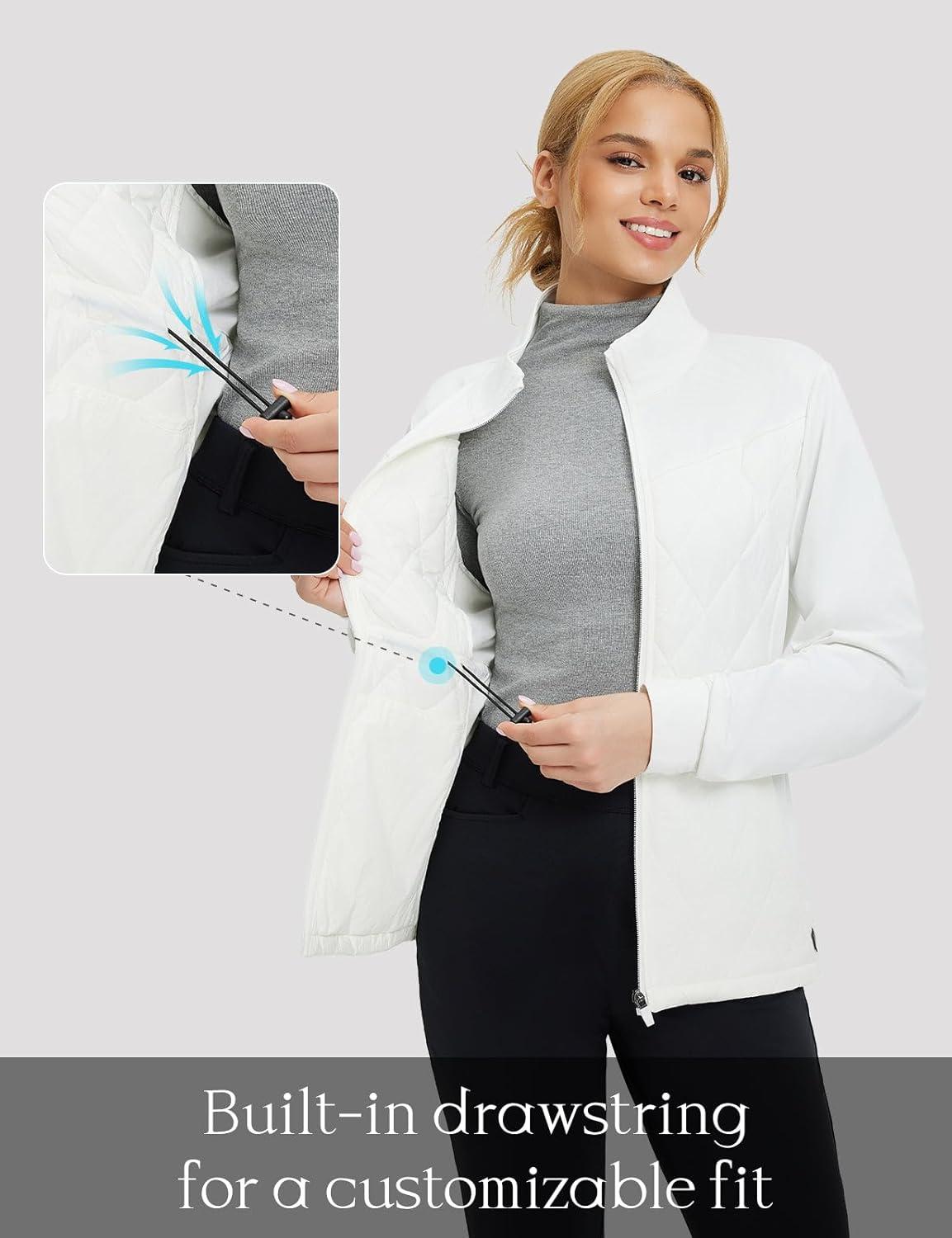 baleaf Women's Golf Quilted Jackets Winter Lightweight Warm Stand Collar Water Resistant Puffer Jacket 4 Pockets(Star White)