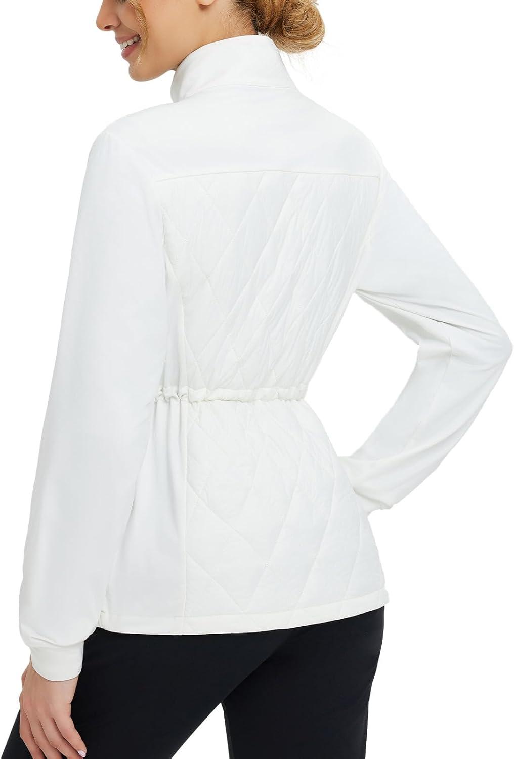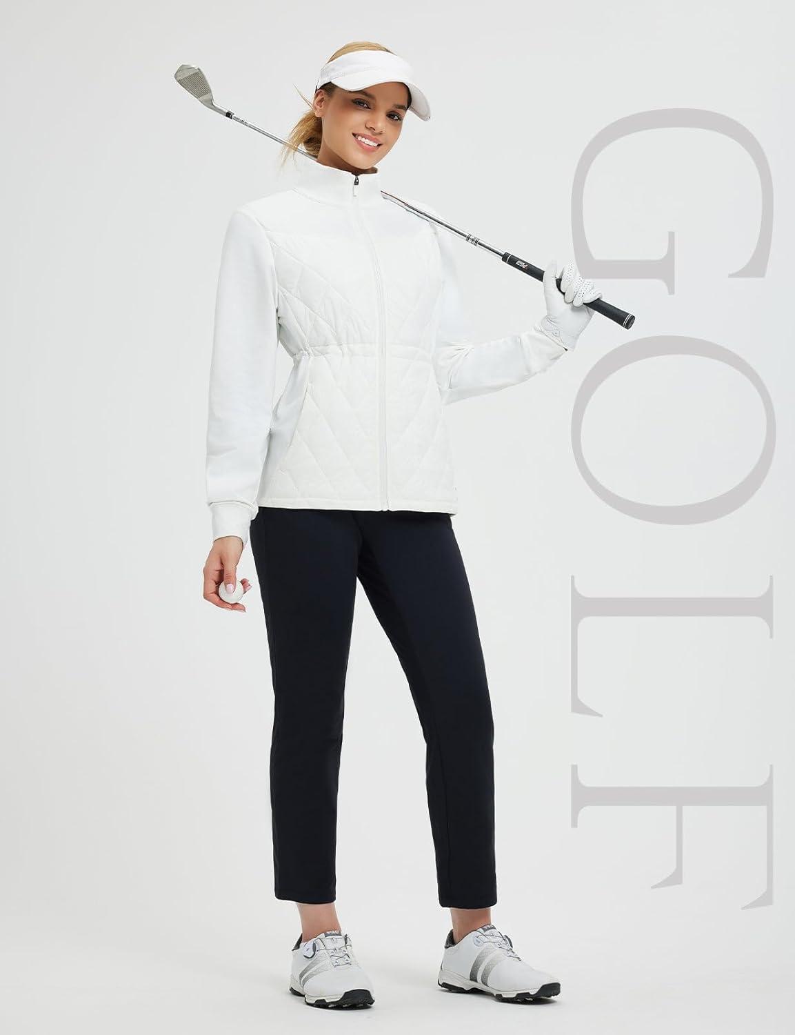 baleaf Women’s Golf Quilted Jackets Winter Lightweight Warm Stand Collar Water Resistant Puffer Jacket 4 Pockets(Star White)